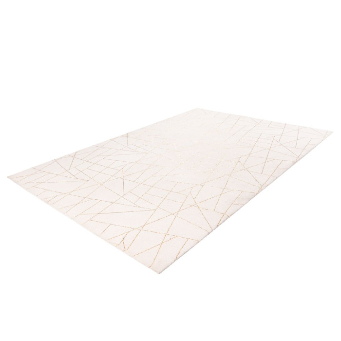 Libellé Tapis Géométrique à Poils Longs "Bijou" Blanc & Or 80 x 150 cm