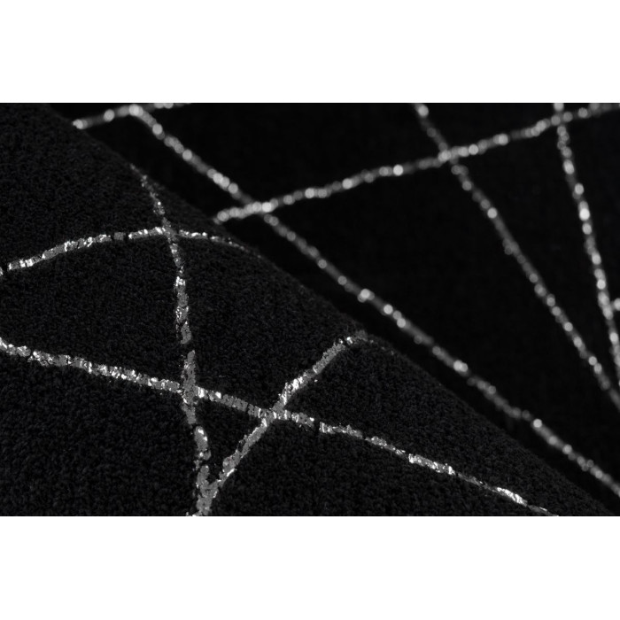 Tapis Géométrique à Poils Longs "Bijou" Noir & Argent 120 x 170 cm