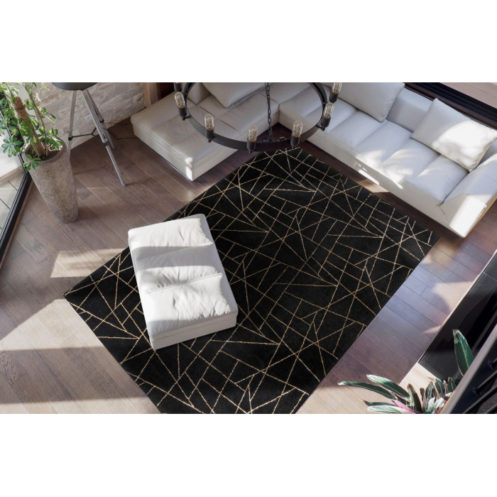 | Libellé | Tapis Géométrique à Poils Longs "Bijou" Noir & Or 80 x 150 cm |