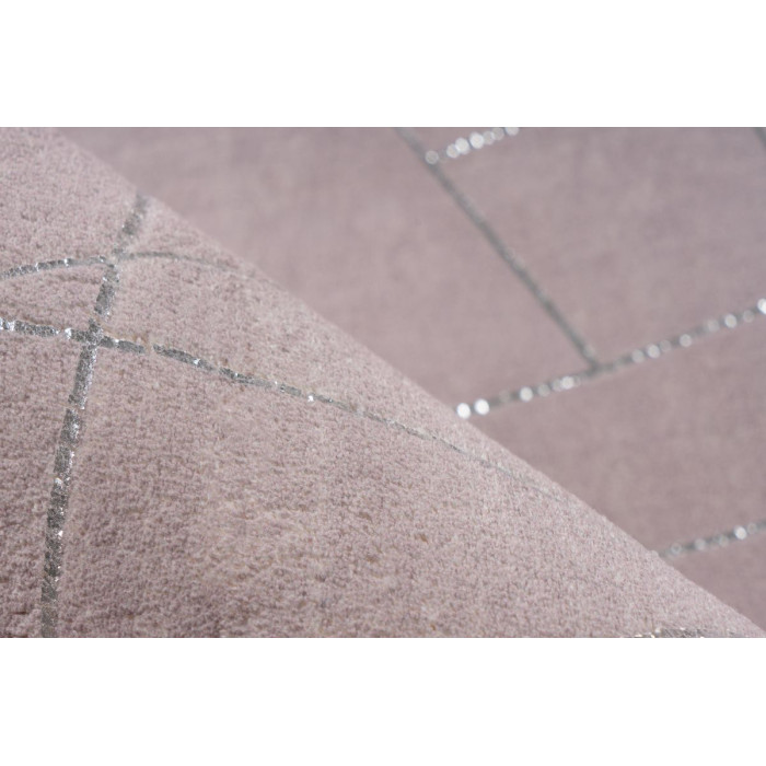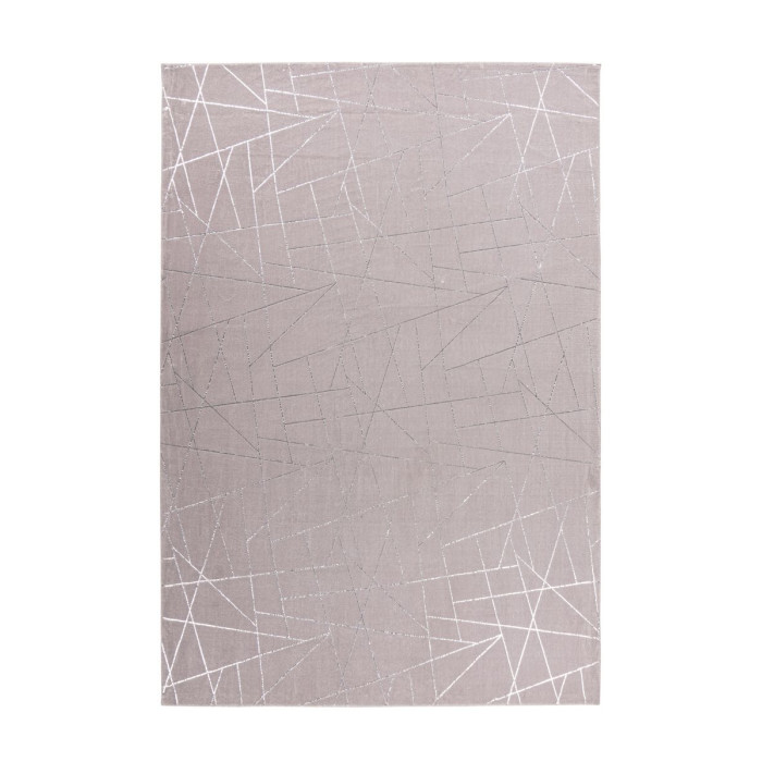 Tapis Géométrique à Poils Longs "Bijou" Taupe & Argent 200 x 290 cm