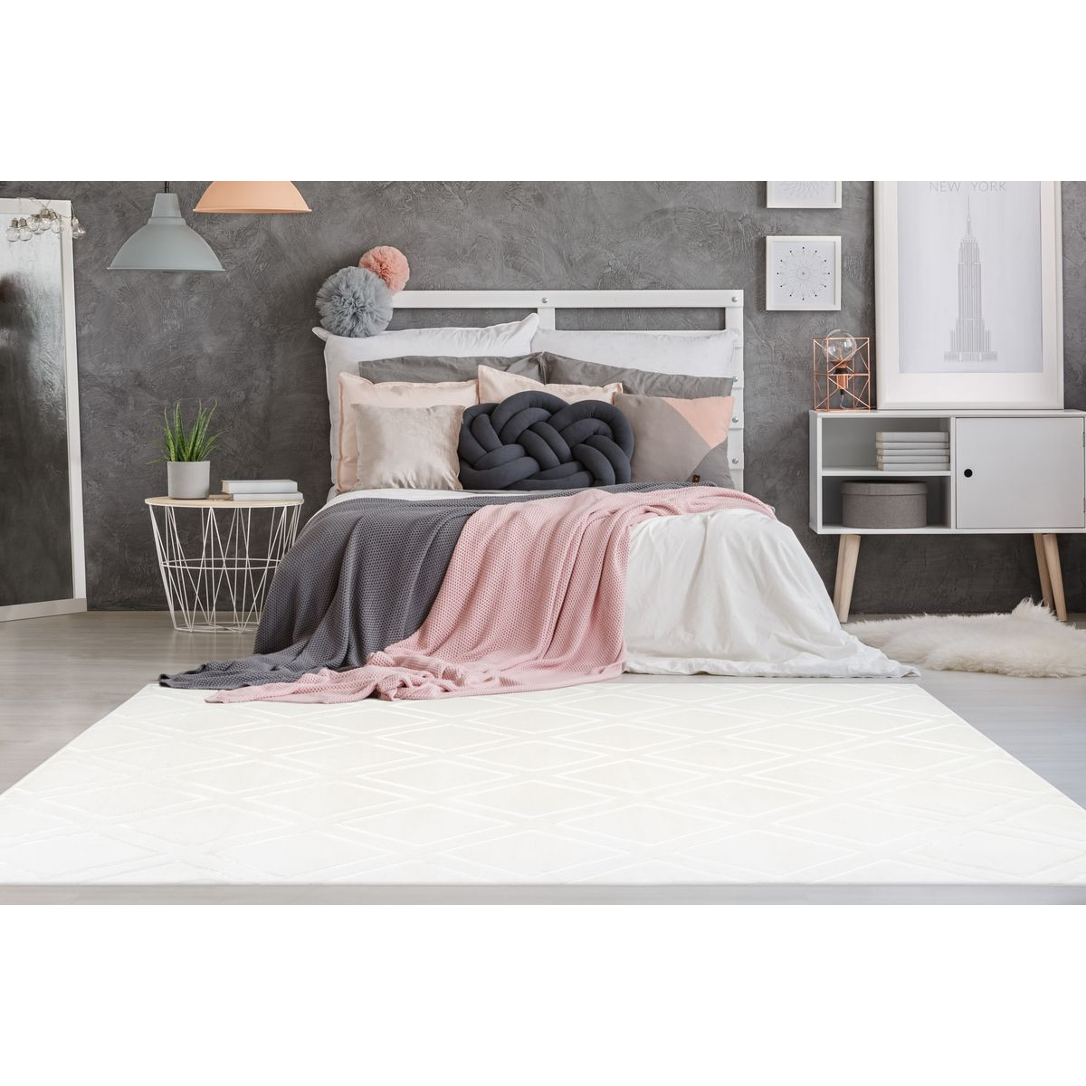 Tapis Imprimé Losange Fait Main "Monroe III" Blanc 160 x 230 cm