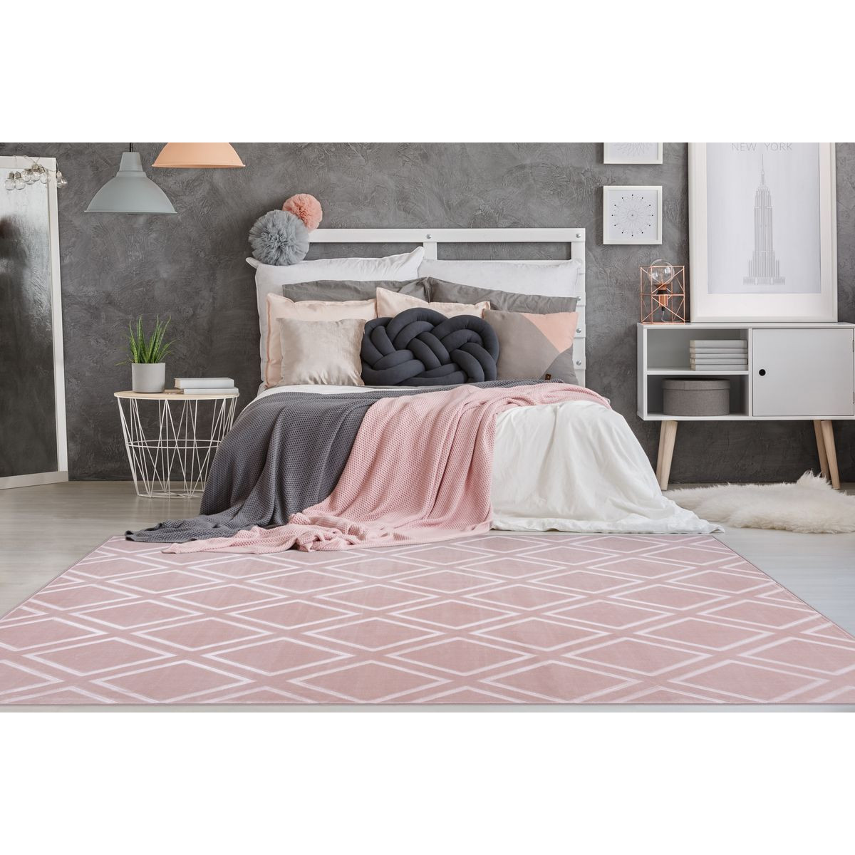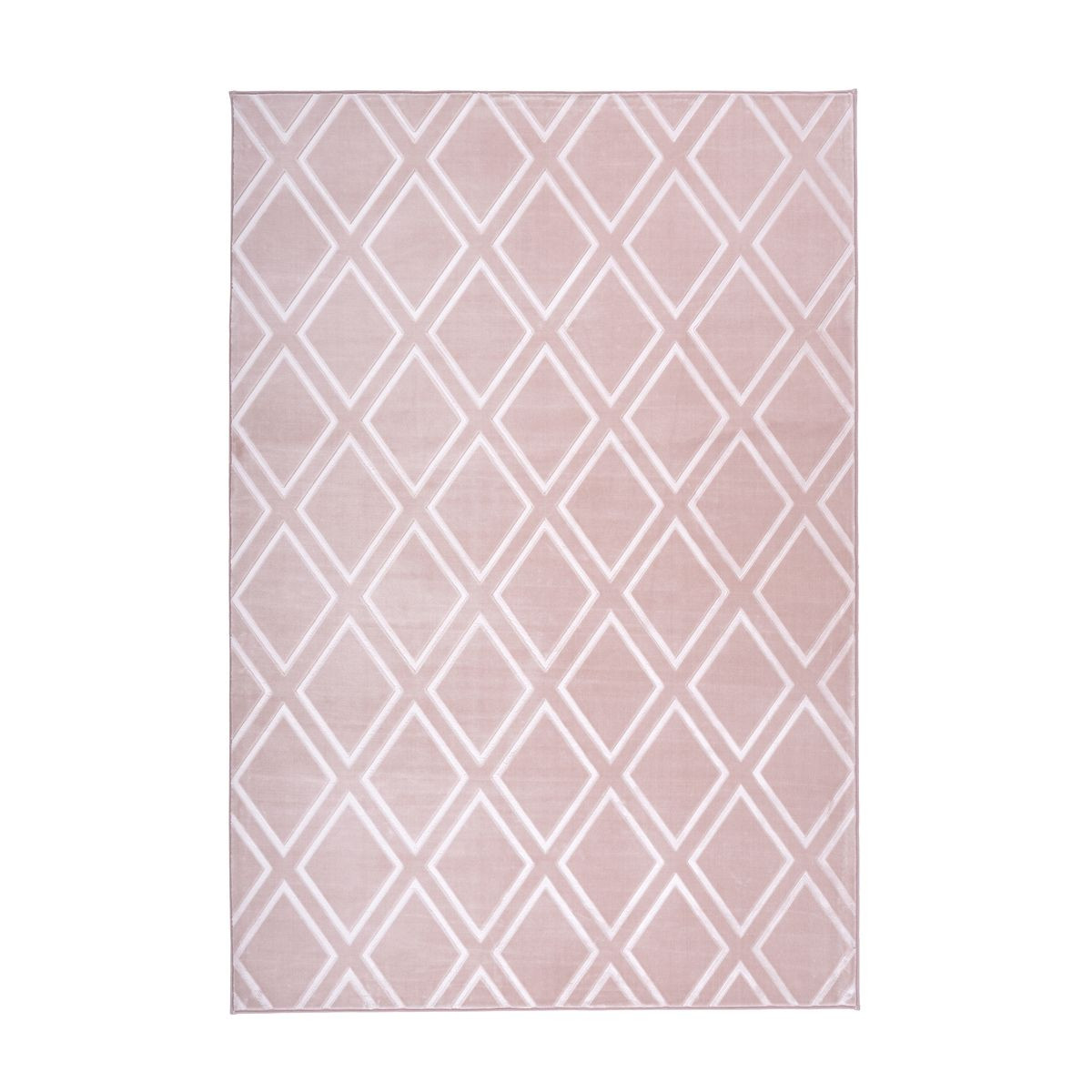 Tapis Imprimé Losange Fait Main "Monroe III" Rose 120 x 170 cm