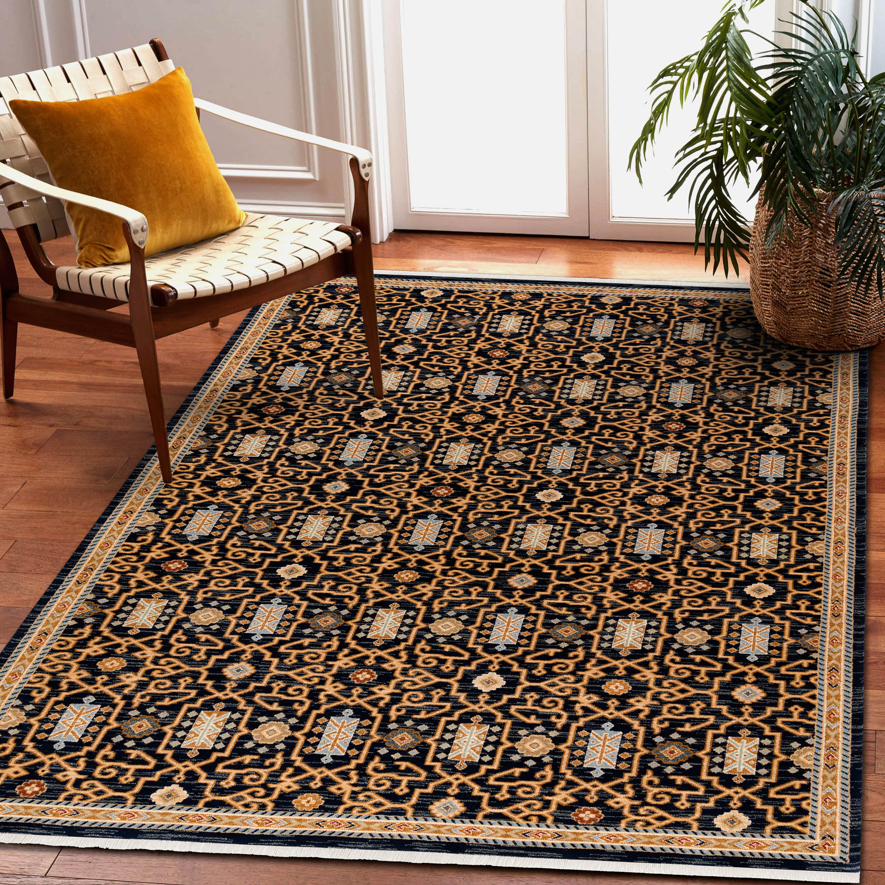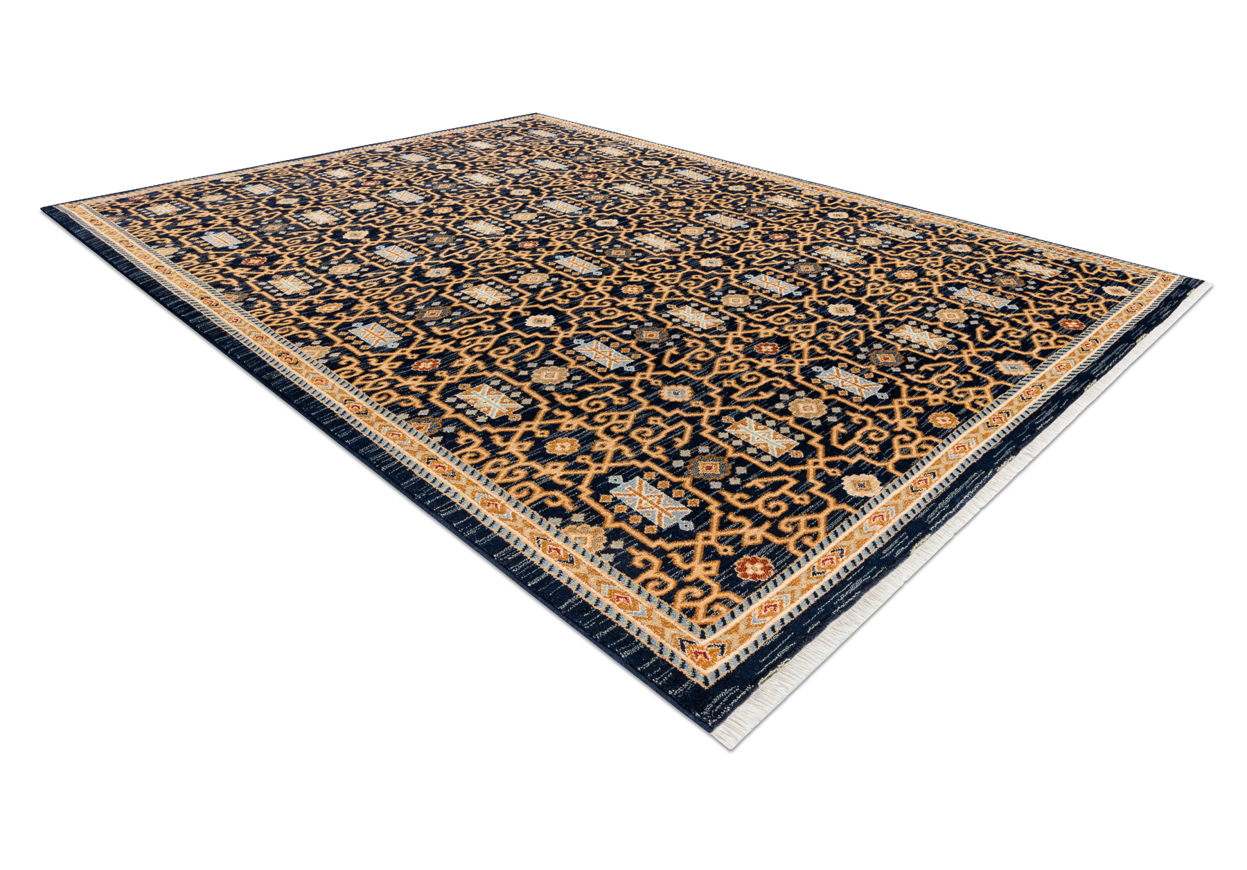 Tapis KESHAN franges, oriental classique 7680/53511 beige / bleu foncé 200x290 cm