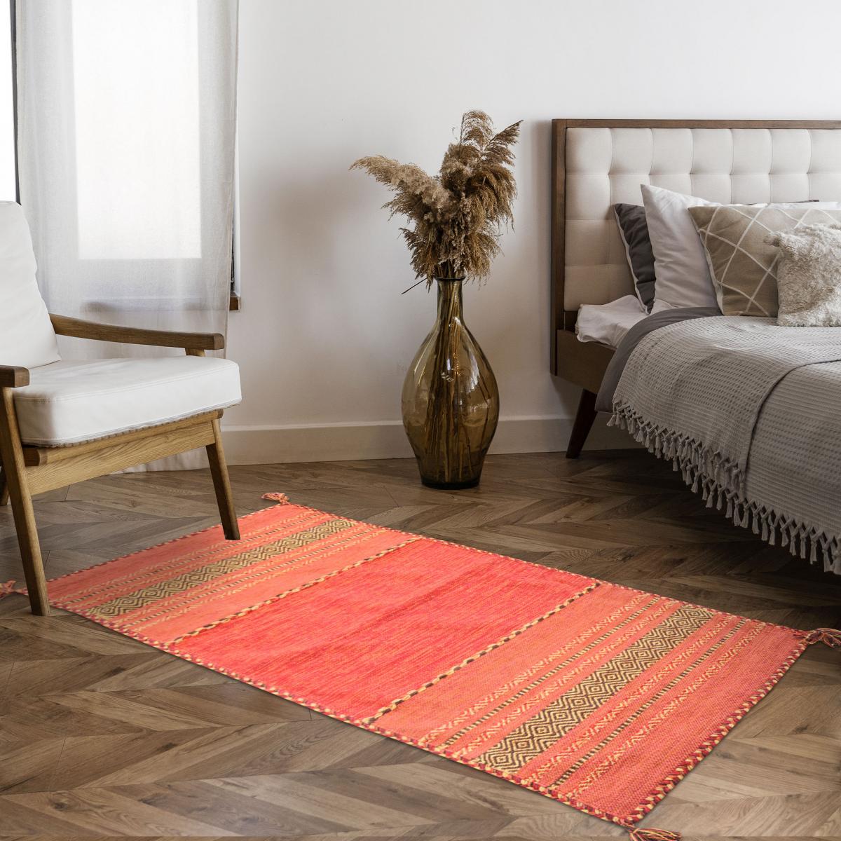 Tapis kilim fait main en coton motif ethnique LYN15 TIVE