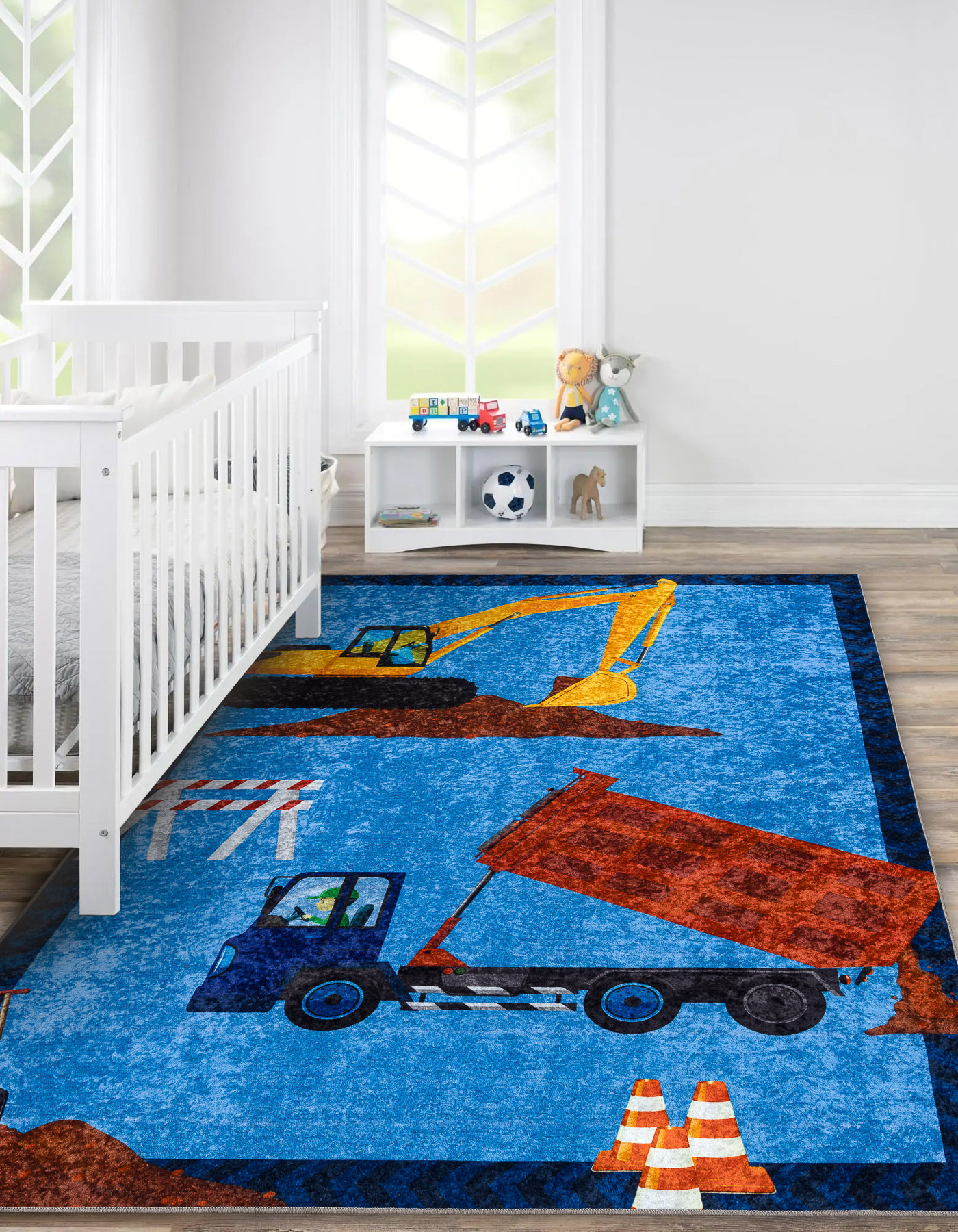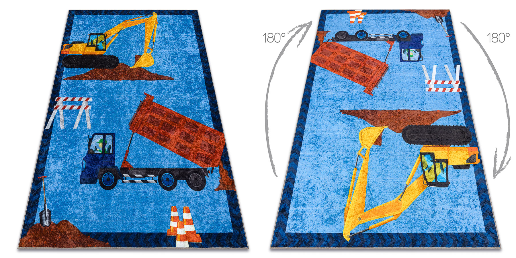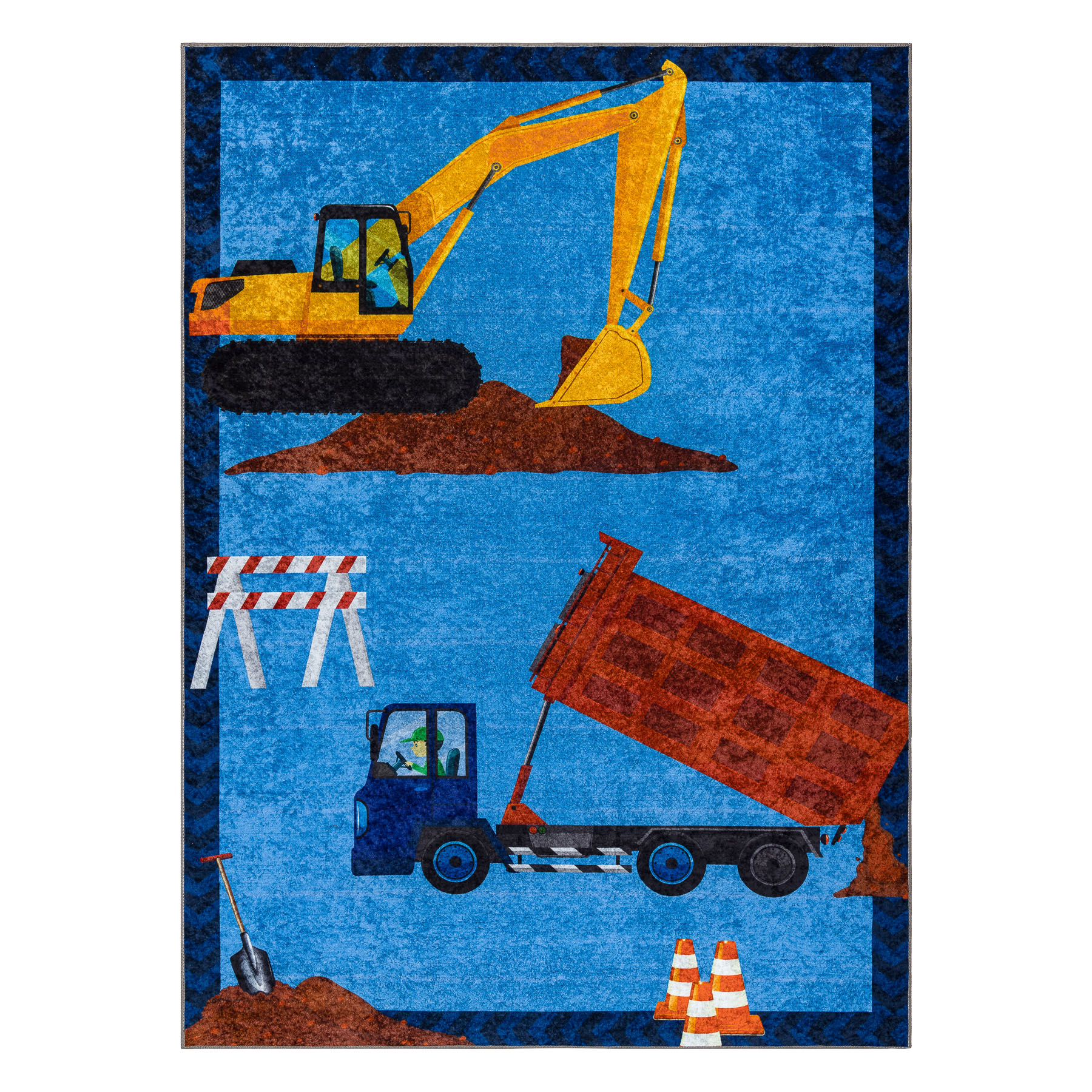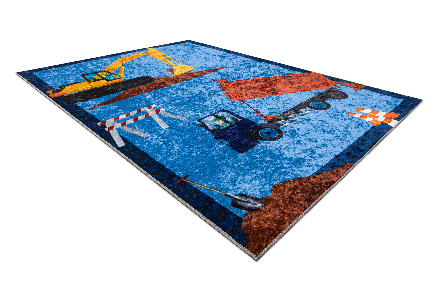 Tapis lavable JUNIOR 51827.803 Camion, pelle pour les enfants antidérapant - bleu 160x220 cm