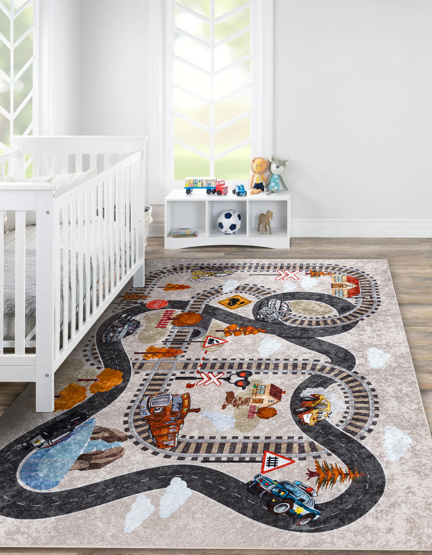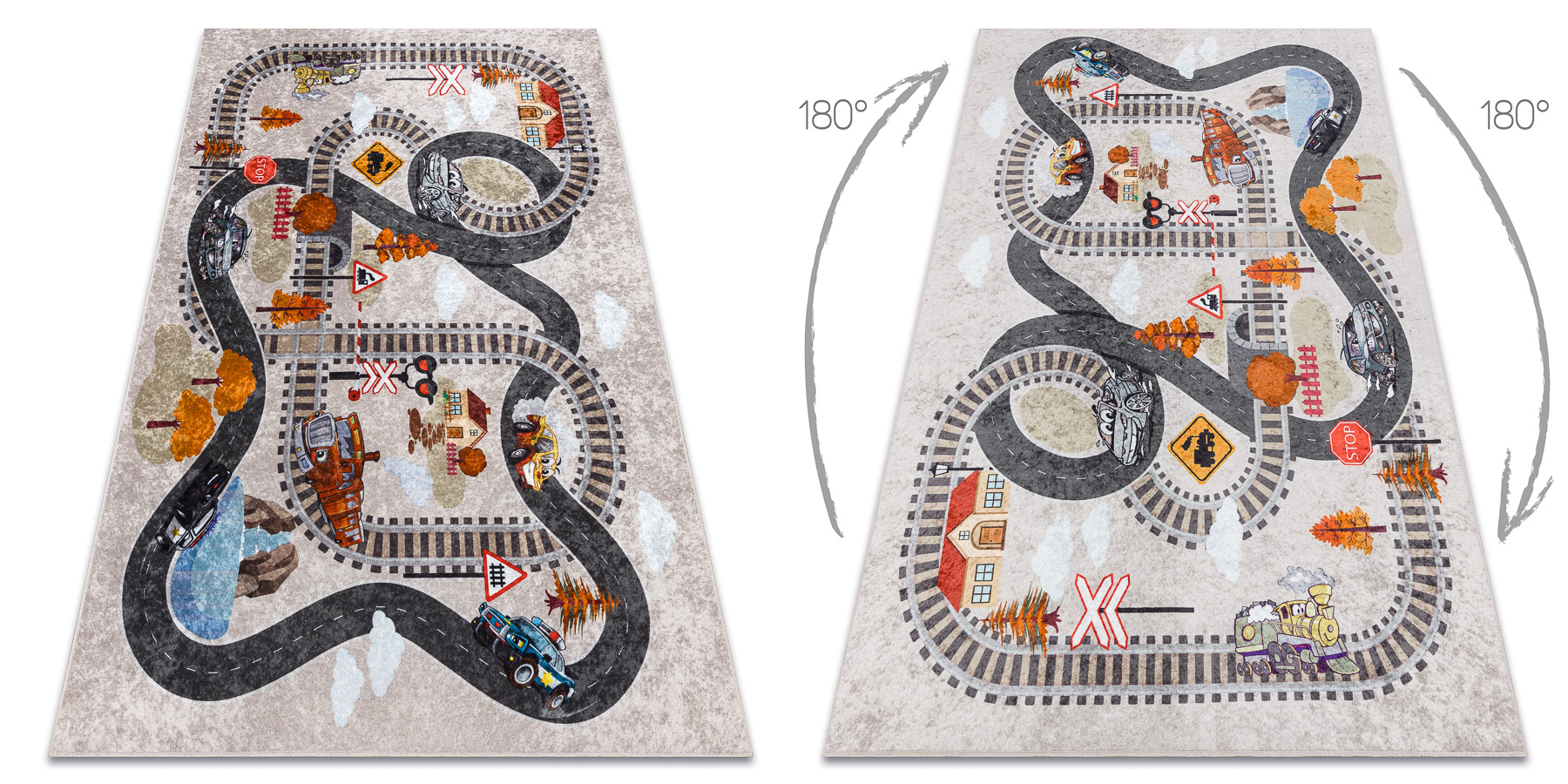 | Libellé | Tapis lavable JUNIOR 51986.803 Voies ferrées, locomotive pour les enfants antidérapant - gris 200x290 cm |