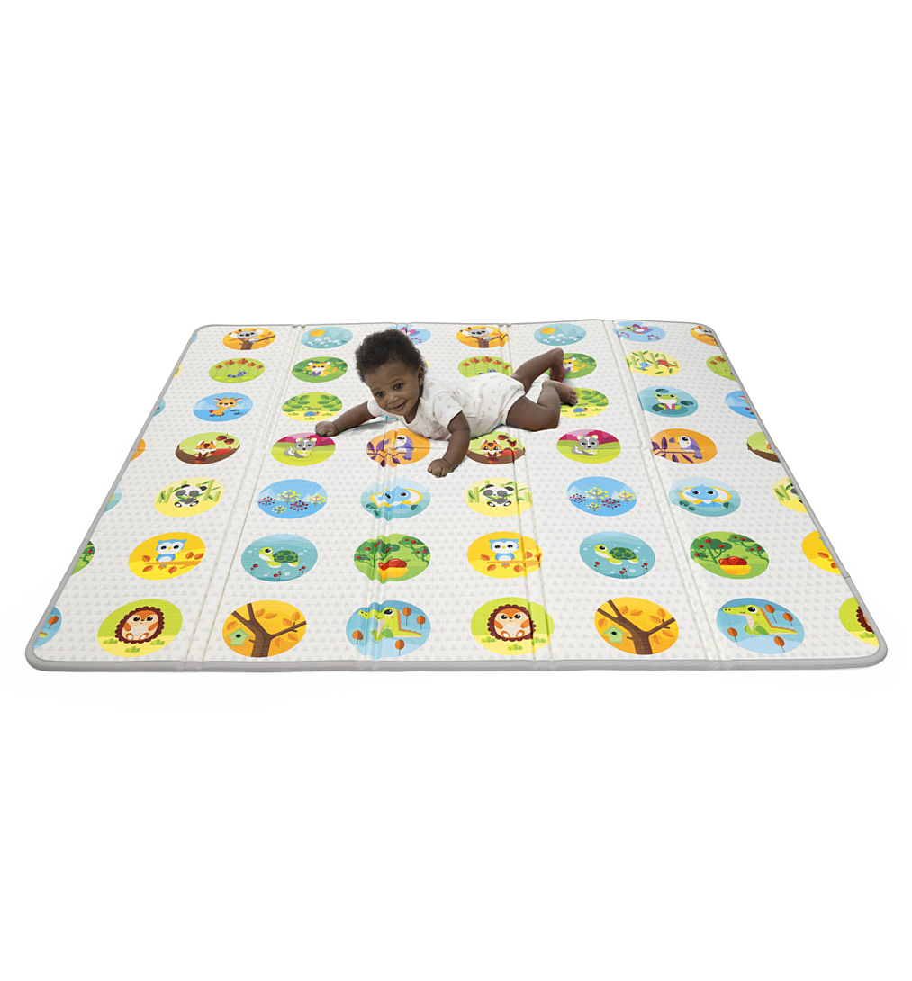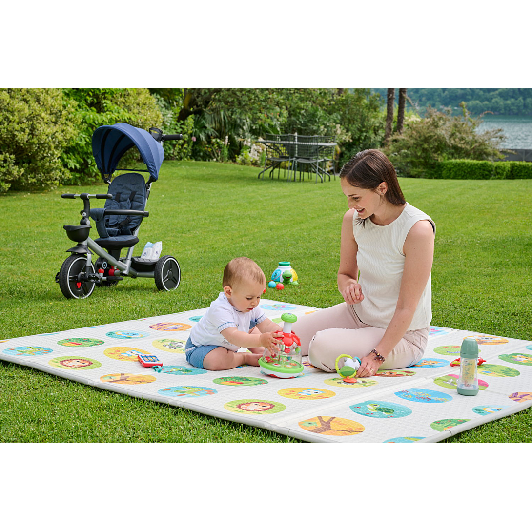 Un premier tapis XXL de 2 mètres de longueur, confortable grâce à ses 1.3 cm d’épaisseur. Avec 2 faces réversibles : un espace ludique et une ambiance déco sur le thème de la forêt.