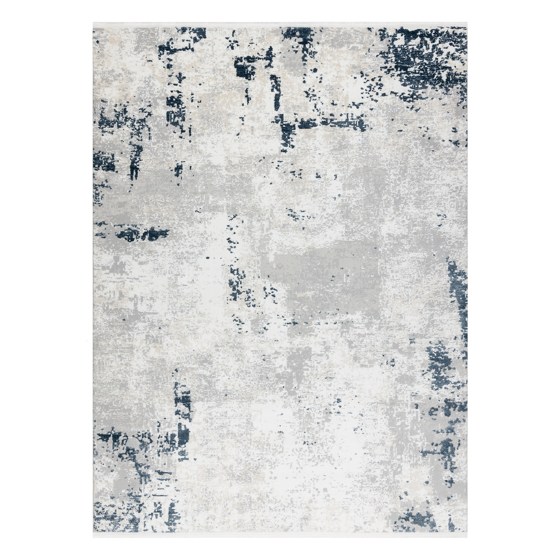 Tapis moderne DUKE 51378 crème / bleu - Béton, pierre structuré, très doux, franges 140x190 cm