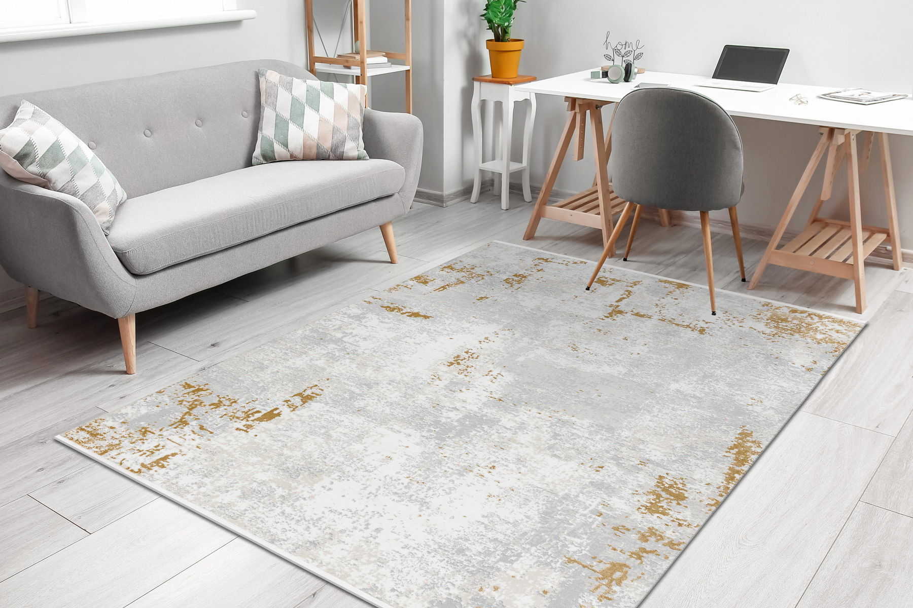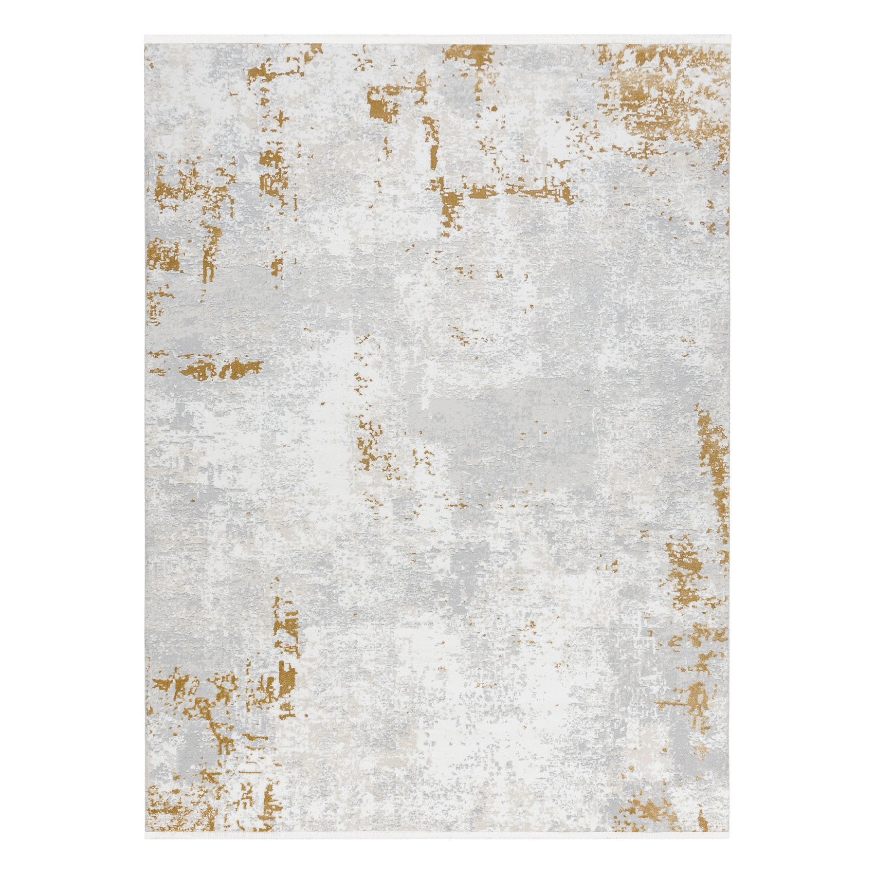 Tapis moderne DUKE 51378 crème / or - Béton, pierre structuré, très doux, franges 280x370 cm