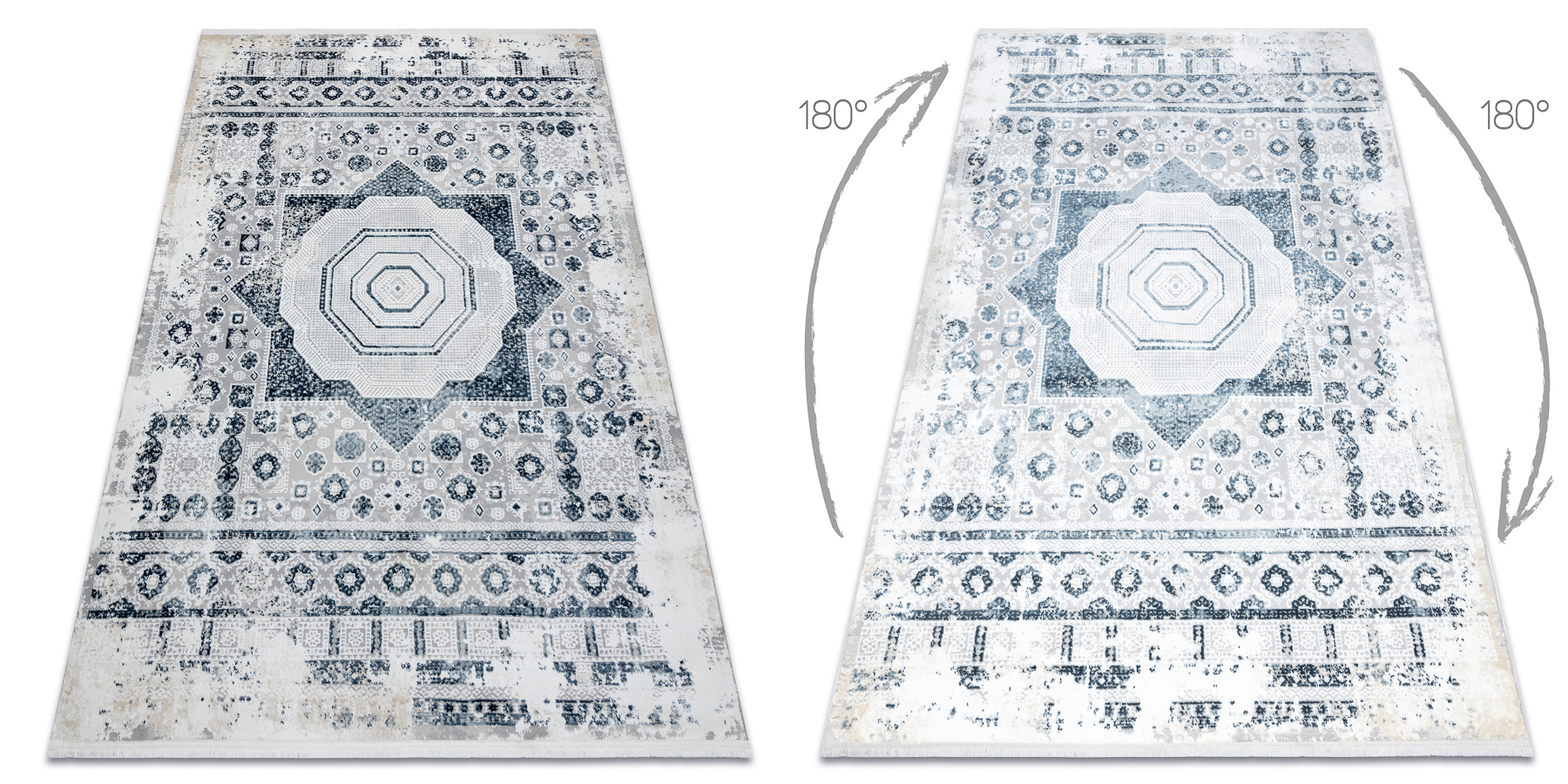 | Libellé | Tapis moderne DUKE 51542 crème / bleu - Rosette vintage, structuré, très doux, franges 180x270 cm |