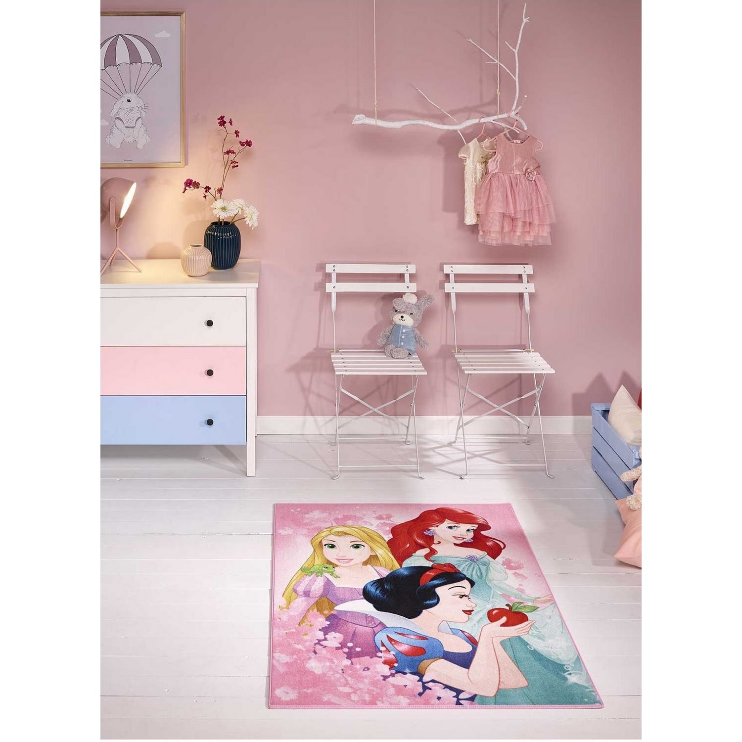 Ce tapis rose est un vrai tapis de princesses, simple et vraiment décoratif ! Ce tapis rose avec le portrait de trois personnages emblématiques Disney, est idéal pour la l chambre de votre enfant ! Le tapis Disney est parfait pour décorer la chambre de votre fille en 1 clin d'œil et durablement!