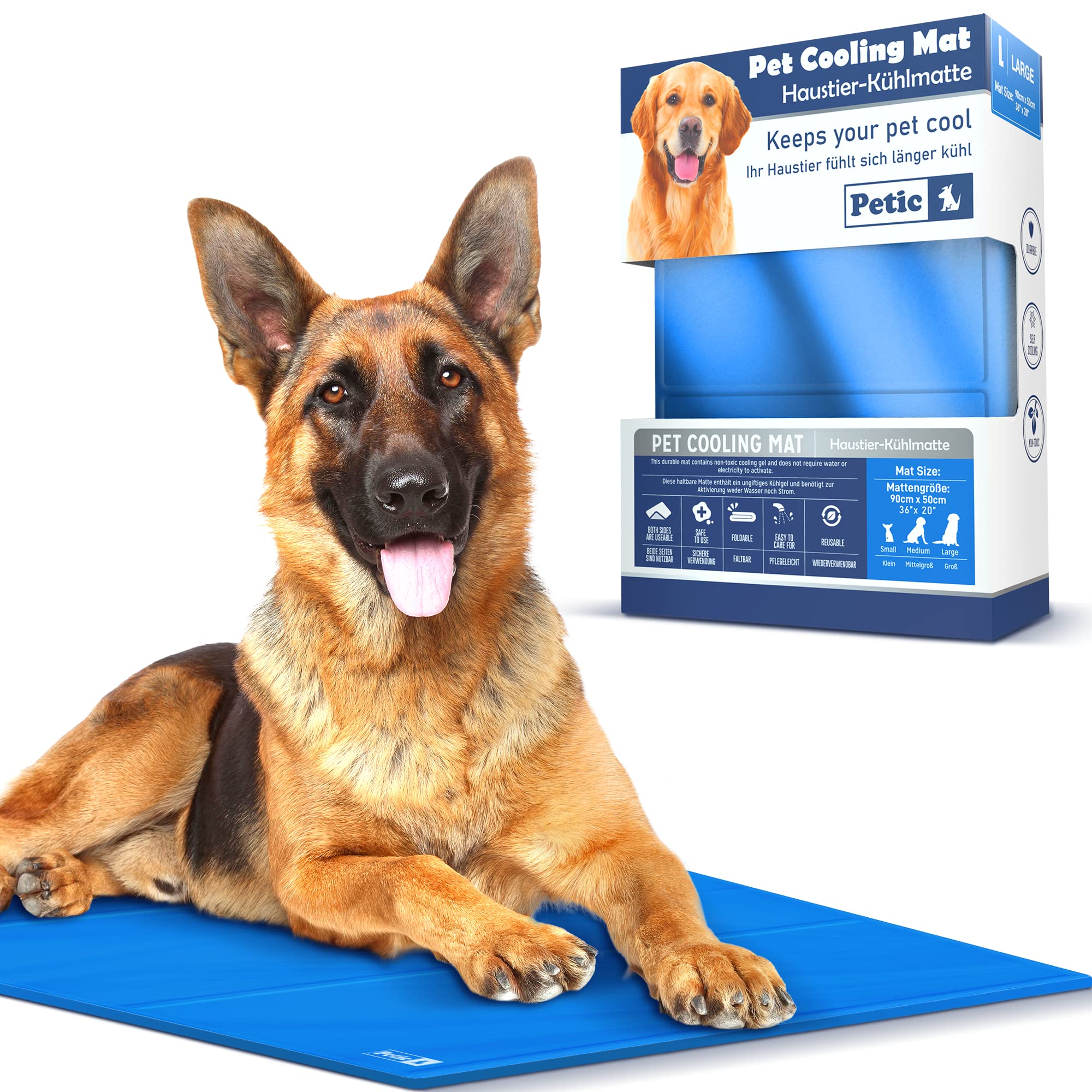 N'oubliez pas de prendre soin de votre animal de compagnie pendant la période la plus chaude de l'année! Rien n'est mieux qu'un tapis de refroidissement pour garder votre ami à quatre pattes au frais et à l'aise. Le tapis « Petic » pour chien est fabriqué à partir de matériaux de haute qualité, la surface est donc résistante aux dommages extérieurs. Le manteau de refroidissement pour chien peut être utilisé non seulement par une journée chaude pour éviter la surchauffe ou la déshydratation. Il peut être utilisé pour les voyages car il ne pèse pas beaucoup et se plie en un petit indispensable de voyage pratique. En outre, le tapis de refroidissement « Petic » pour chiens est idéal pour les animaux malades qui ont besoin d'une sensation de refroidissement pour engourdir la douleur et apaiser l'enflure. Comment ça marche ? Le tapis de refroidissement pour chien est basé sur la technologie de refroidissement automatique. Le coussin froid est activé par la pression et la chaleur du corps, de sorte que votre animal de compagnie doit simplement s'allonger dessus et laisser la technologie auto-refroidissement faire le reste. Caractéristiques du tapis de refroidissement pour chien : Se replie et se nettoie facilement. Construction non toxique et robuste. Technologie auto-chauffante Détails du tapis pour chien : Dimensions : 90 x 50 cm. Poids: 1,9 kg Couleur : bleu. Matériau : polyester et tissu PVC. Gel : gel rafraîchissant non toxique, sans danger pour tous les animaux de compagnie. POLYVALENT, TRÈS PRATIQUE - Ne laissez pas votre animal souffrir de surchauffe. Ce tapis rafraîchissant chien aide à abaisser la température corporelle de votre animal. Mais il peut également apporter un soulagement apaisant aux animaux malades et à ceux qui ont subi une opération chirurgicale. Il est également très pratique après des exercices, de longues promenades ou diverses activités fatigantes. GRANDE TAILLE - Toutes les tailles d'animaux peuvent facilement être accueillies sur ce tapis refrigerant, avec ses dimensions généreuses de 90 cm x 50 cm. Ainsi, que vous ayez un gros Labrador ou un petit chat persan, ils peuvent facilement et confortablement s'installer sur le coussin pour chien refrigerant. C'est aussi bon pour toutes les races ! SURFACE ÉTANCHE - Ne craignez pas qu'elle soit déchirée ou mise en pièces. Ce matelas refroidissant est fait pour être solide, durable et capable de résister aux morsures et aux griffures de votre animal. Aucun animal n'est assez fort pour l'endommager, même s'il fait de gros efforts ! TECHNOLOGIE DE REFROIDISSEMENT AUTOMATIQUE - Le monde étant préoccupé par la diminution de l'approvisionnement en énergie, ce chien tapis de refroidissement est fabriqué de telle manière qu'il n'utilise aucune ressource pour fonctionner. Grâce au matériau spécial utilisé à l'intérieur du tapis refroidissant, il se maintient frais à tout moment, quelle que soit la température de l'animal. FACILE À PORTER / NETTOYER – Le matelas rafraichissant est pliable, donc portable et facile à transporter partout où vous allez. Une sortie à la plage ou un pique-nique dans le parc ? Emportez le coussin rafraichissant pour chien car il se glisse dans différents types de sacs ou de paniers. Le matelas de refroidissement est aussi facile à nettoyer. Il suffit de le laver sous l'eau courante ou de l'asperger d'eau puis de l'essuyer avec un chiffon sec ce qui en fait le tapis rafraîchissant idéal.
