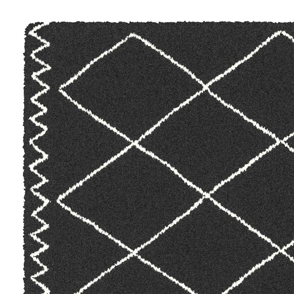 Très joli tapis Saoura noir rectangulaire de dimensions 80 x 150 cm confectionné en polypropylène. Apportez des coloris naturels dans votre intérieur avec ce jolis tapis aux motifs géométriques ethniques.
