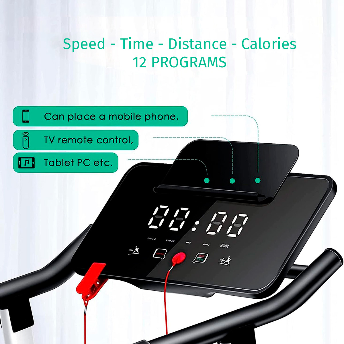 - Écran LCD affichant le temps, les calories et la distance.