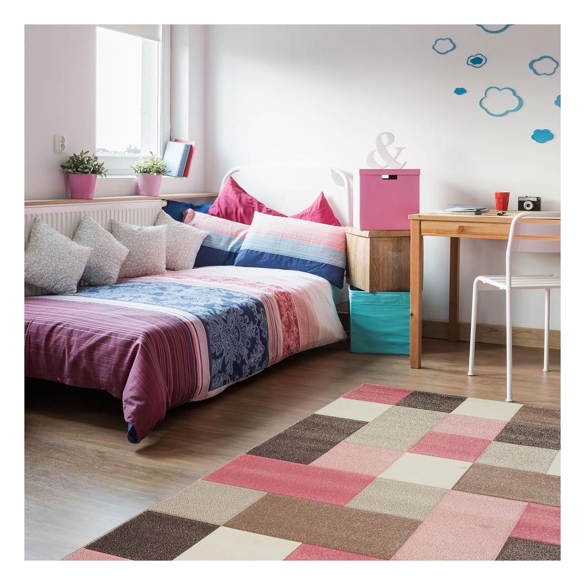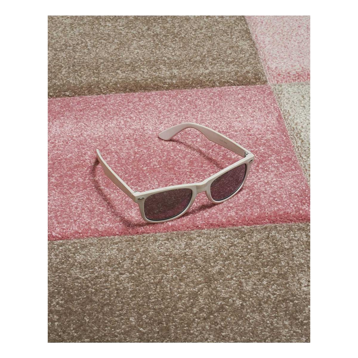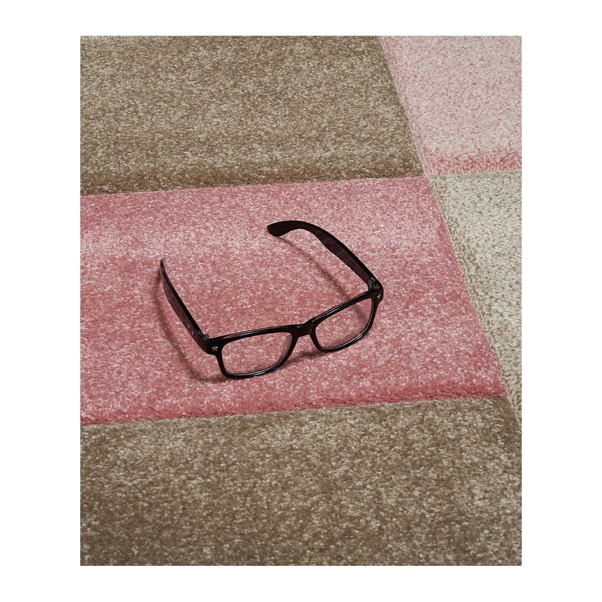 Tapis salon CARREAUX Rose OEKO TEX® en polypropylène doux et soyeux