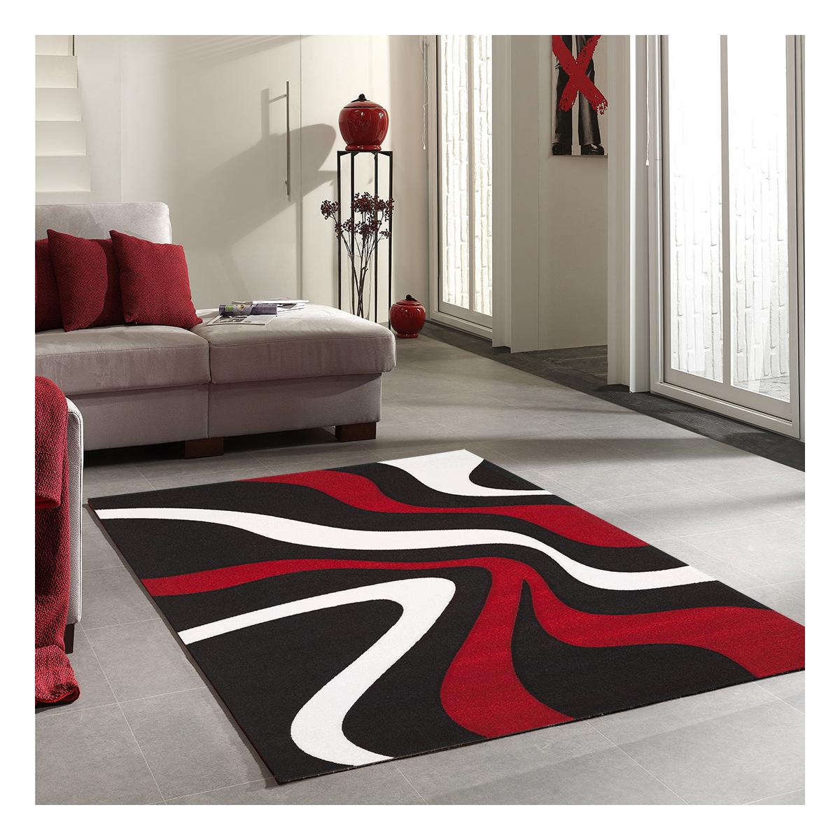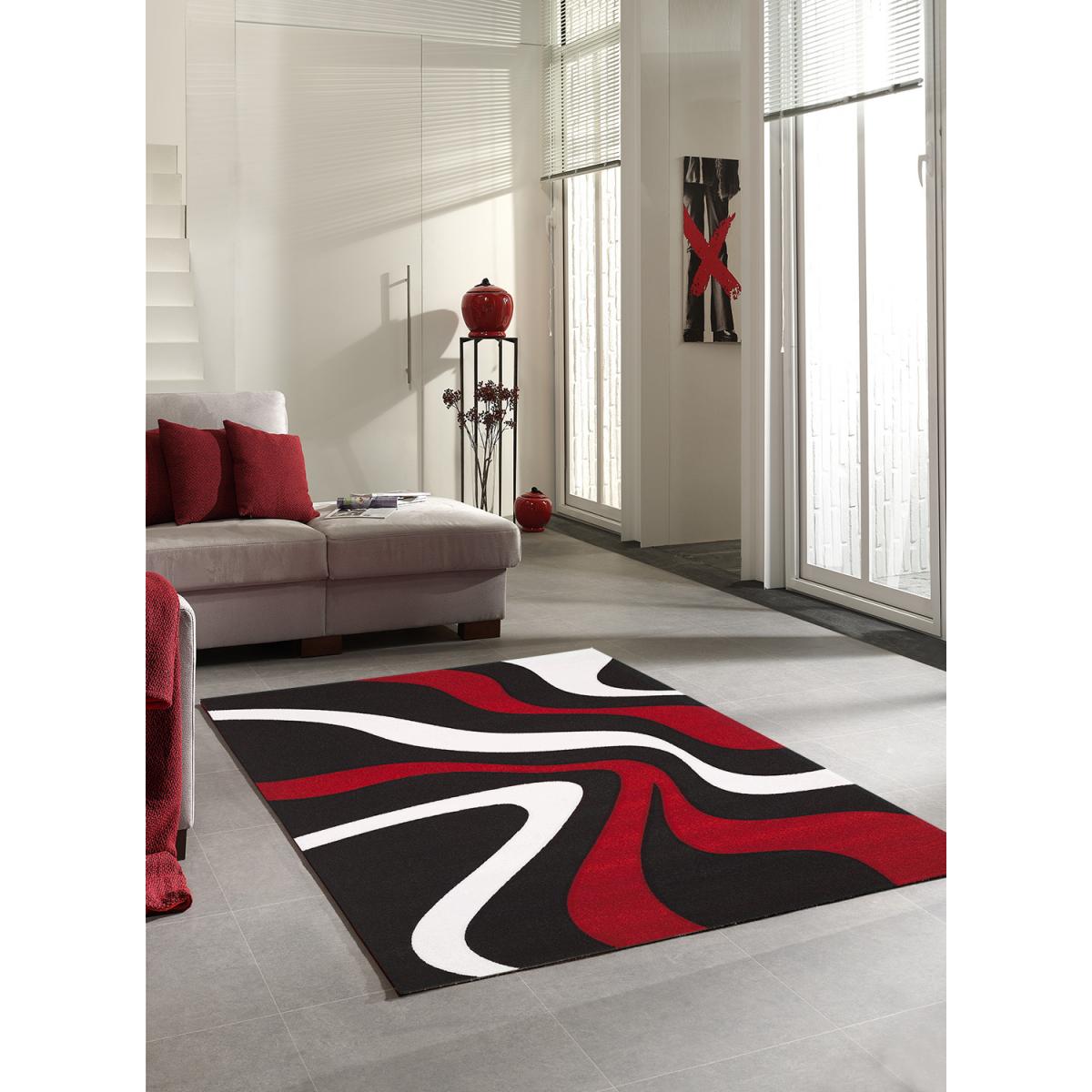 Tapis salon DIAMOND VAGUES Rouge OEKO TEX® en polypropylène doux et soyeux