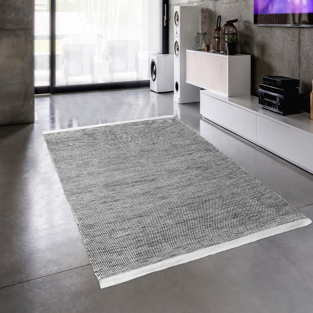 tapis salon fait à la main en PVC noir et blanc rectangle motif uni