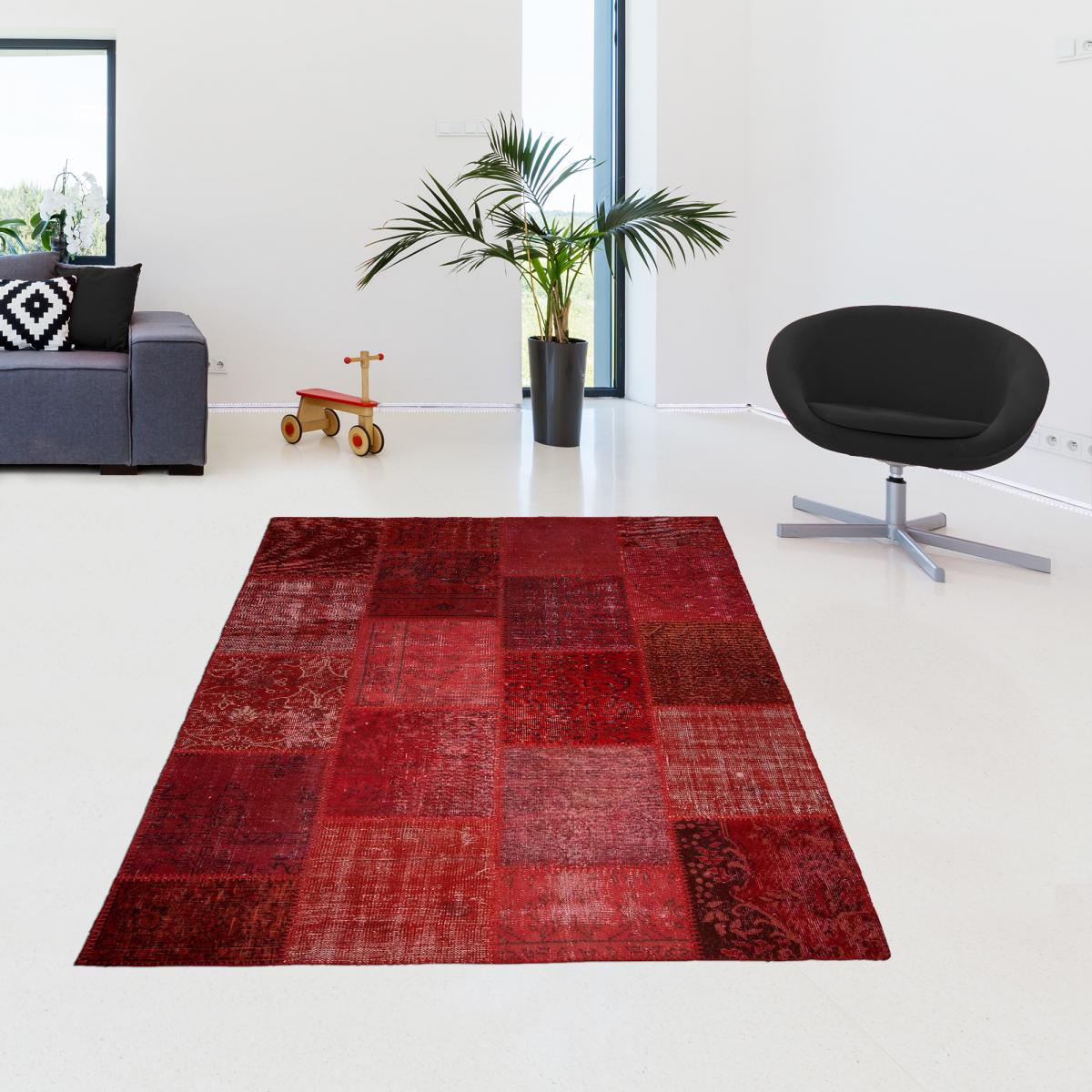 Tapis salon Fait main CLASS PATCHWORK 1A2T Rouge en laine
