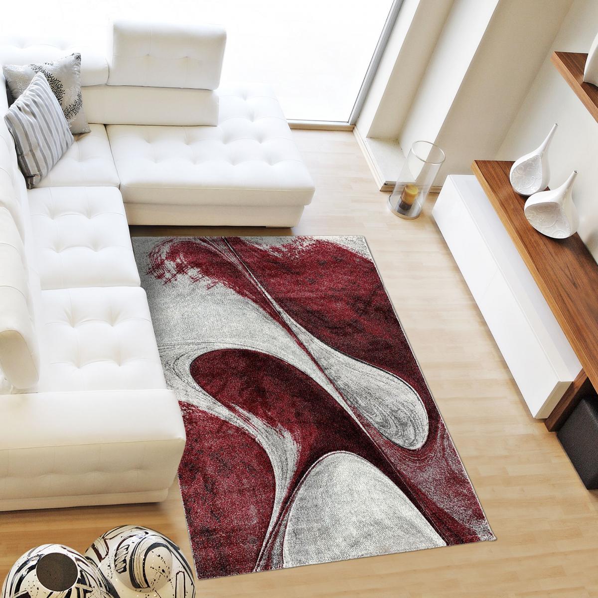 Tapis salon MADILA Bordeaux OEKO TEX® en polypropylène doux et soyeux