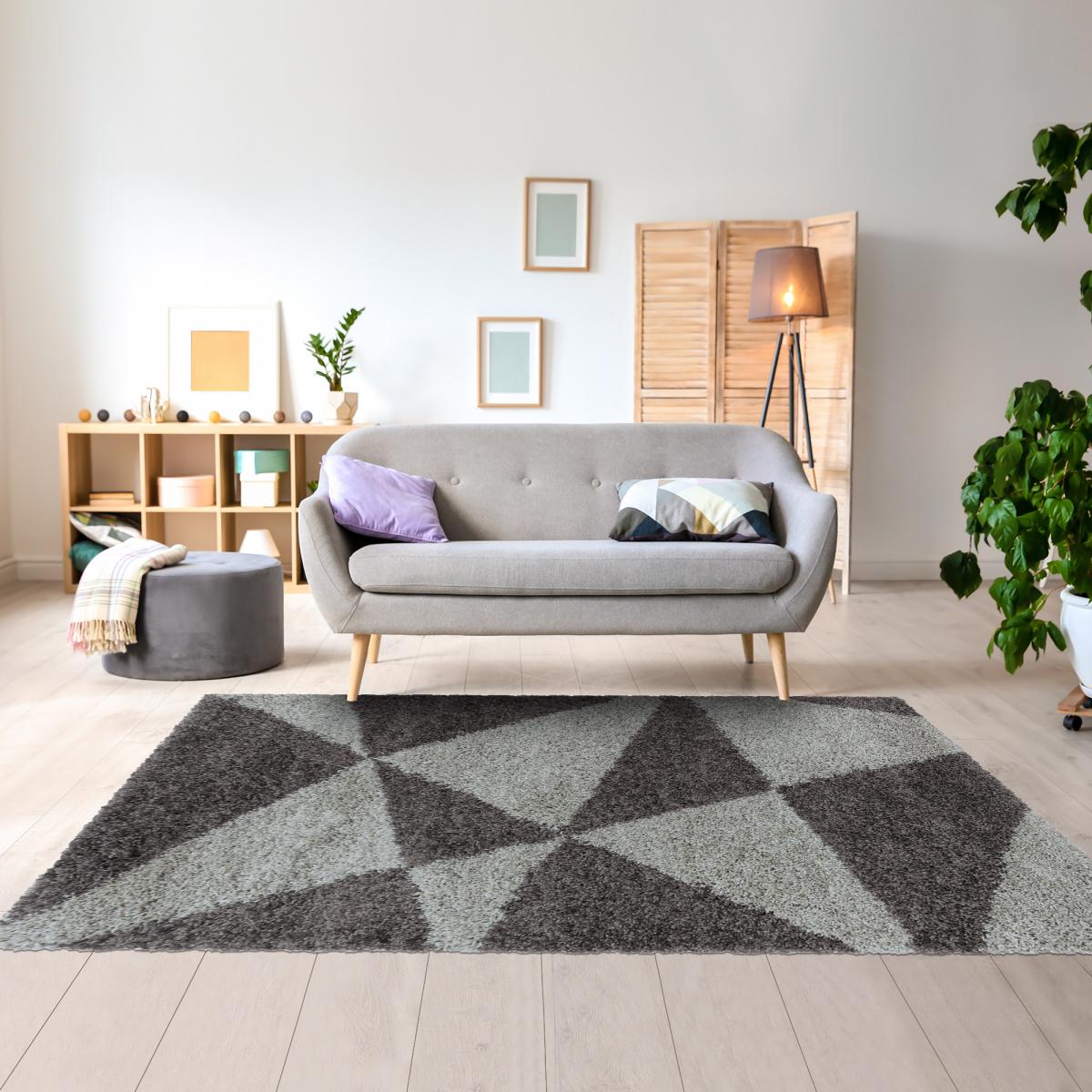 Tapis shaggy tissé motif géométrique TRIANGLE A