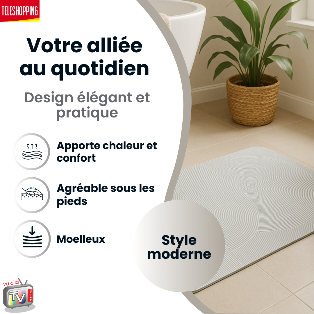 - Confort et douceur – Moelleux et agréable sous les pieds, il procure une sensation de chaleur et de confort après un bain moussant ou un bain de pied. Convient à un usage quotidien dans la salle de bain ou un espace détente maison.