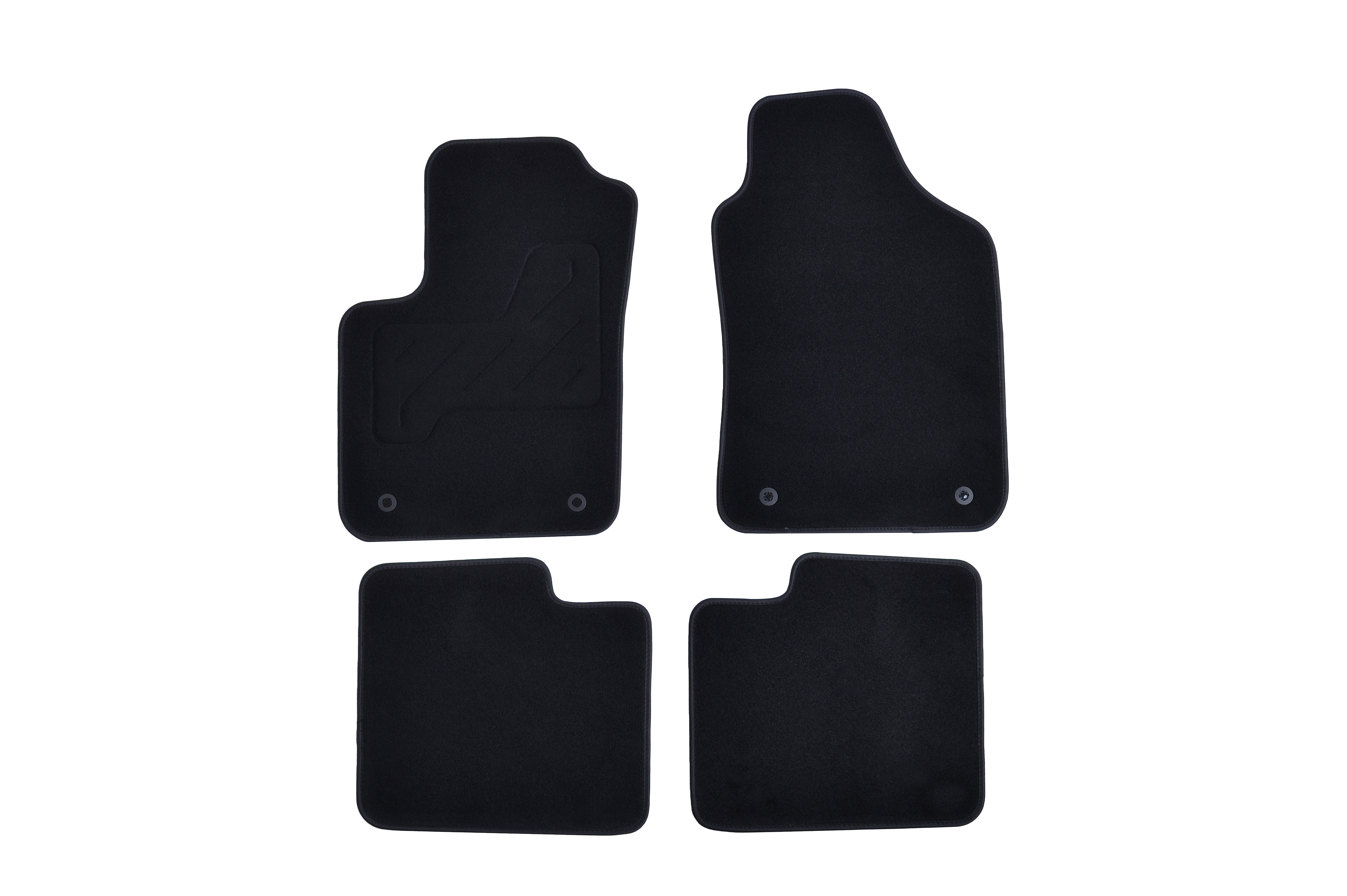 Moquette aiguilletée 750 g/m² - talonnette renforcée et ganse textile - mousse antidérapante côté conducteur - dos granulé côté passager et à l'arrière - clips de fixation d'origine