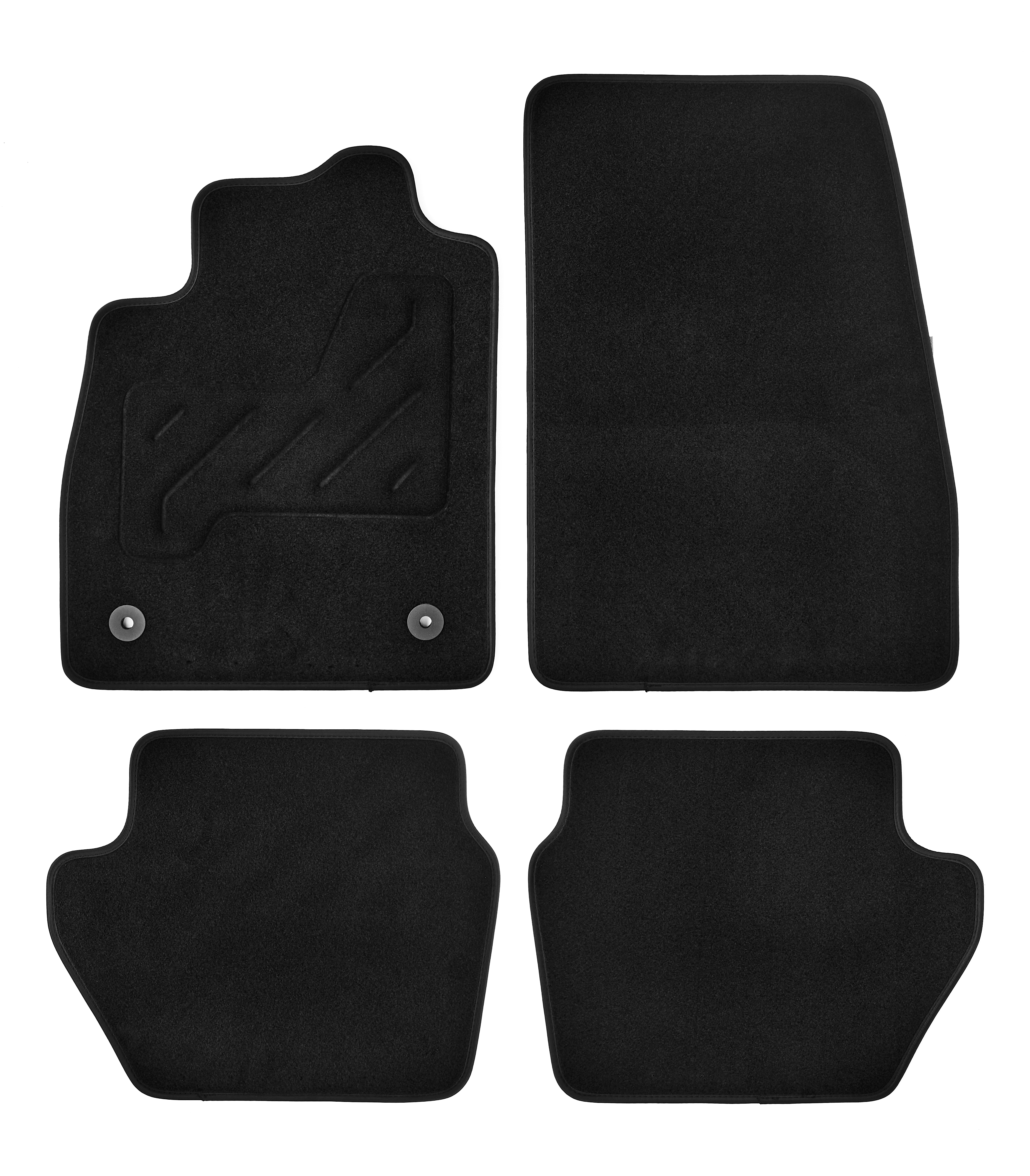 Moquette aiguilletée 750 g/m² - Talonnette renforcée et ganse textile - Mousse antidérapante côté conducteur - Dos granulé côté passager et à l'arrière - Clips de fixation d'origine