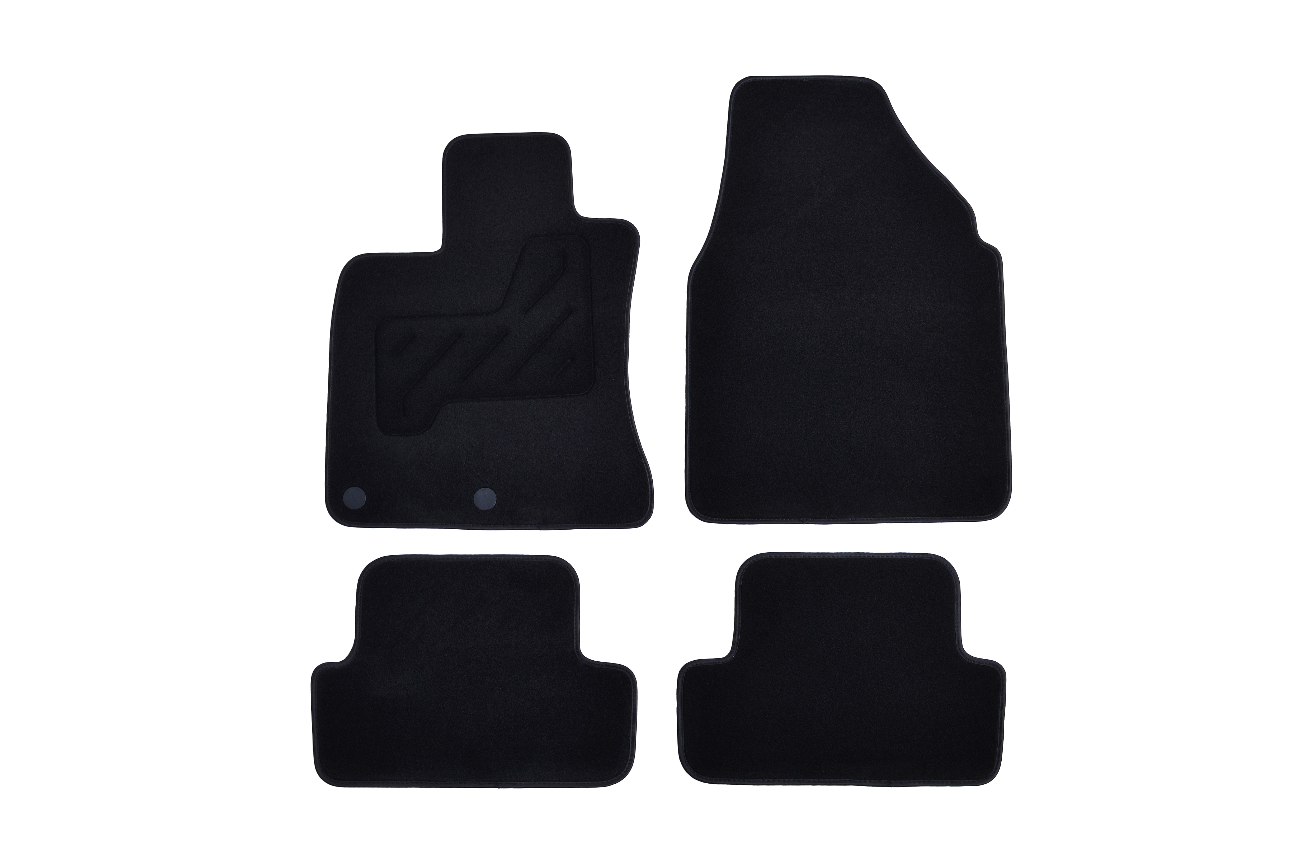Moquette aiguilletée 750 g/m² - talonnette renforcée et ganse textile - mousse antidérapante côté conducteur - dos granulé côté passager et à l'arrière - clips de fixation d'origine