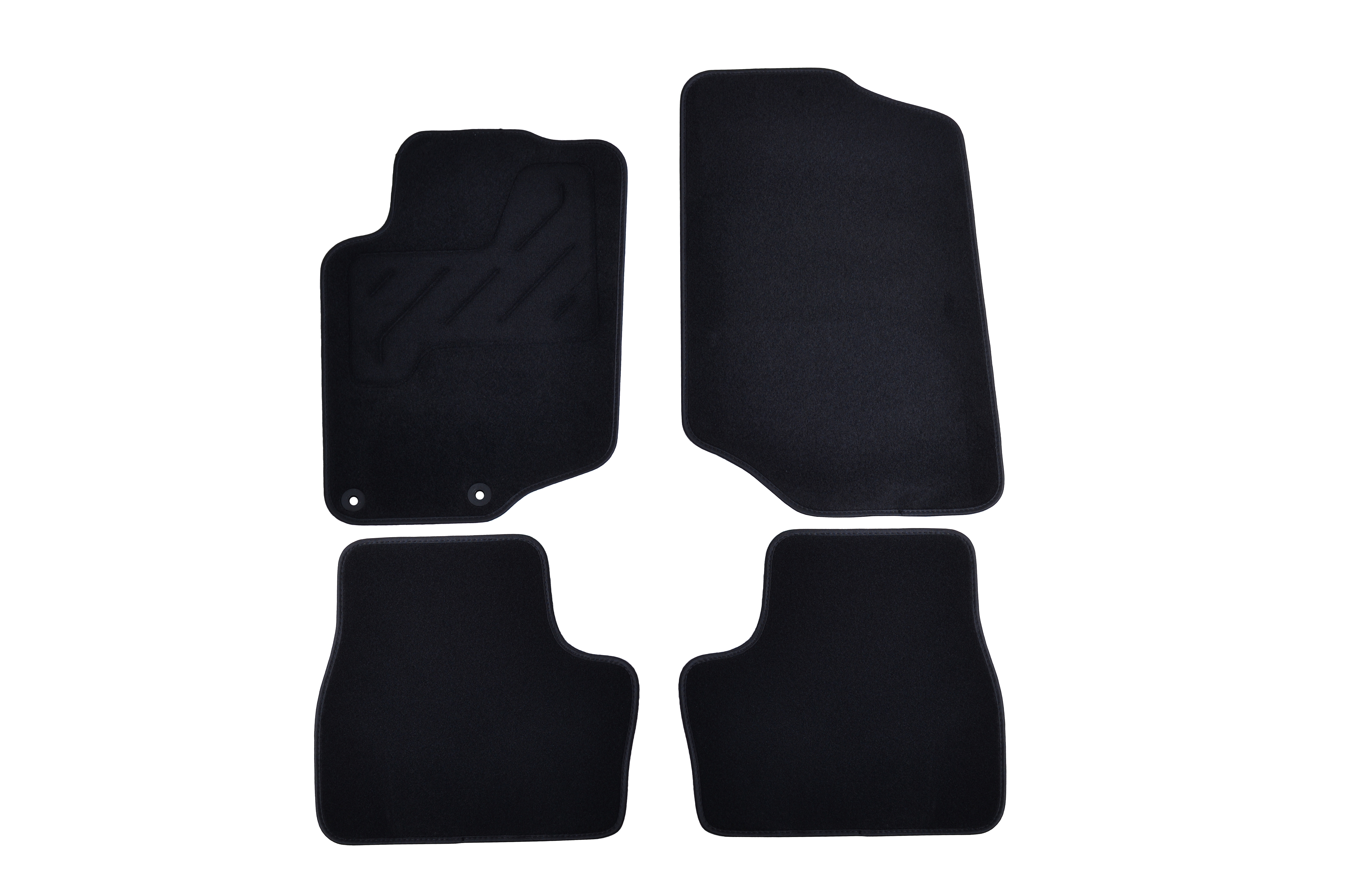 Moquette aiguilletée 750 g/m² - talonnette renforcée et ganse textile - mousse antidérapante côté conducteur - dos granulé côté passager et à l'arrière - clips de fixation d'origine
