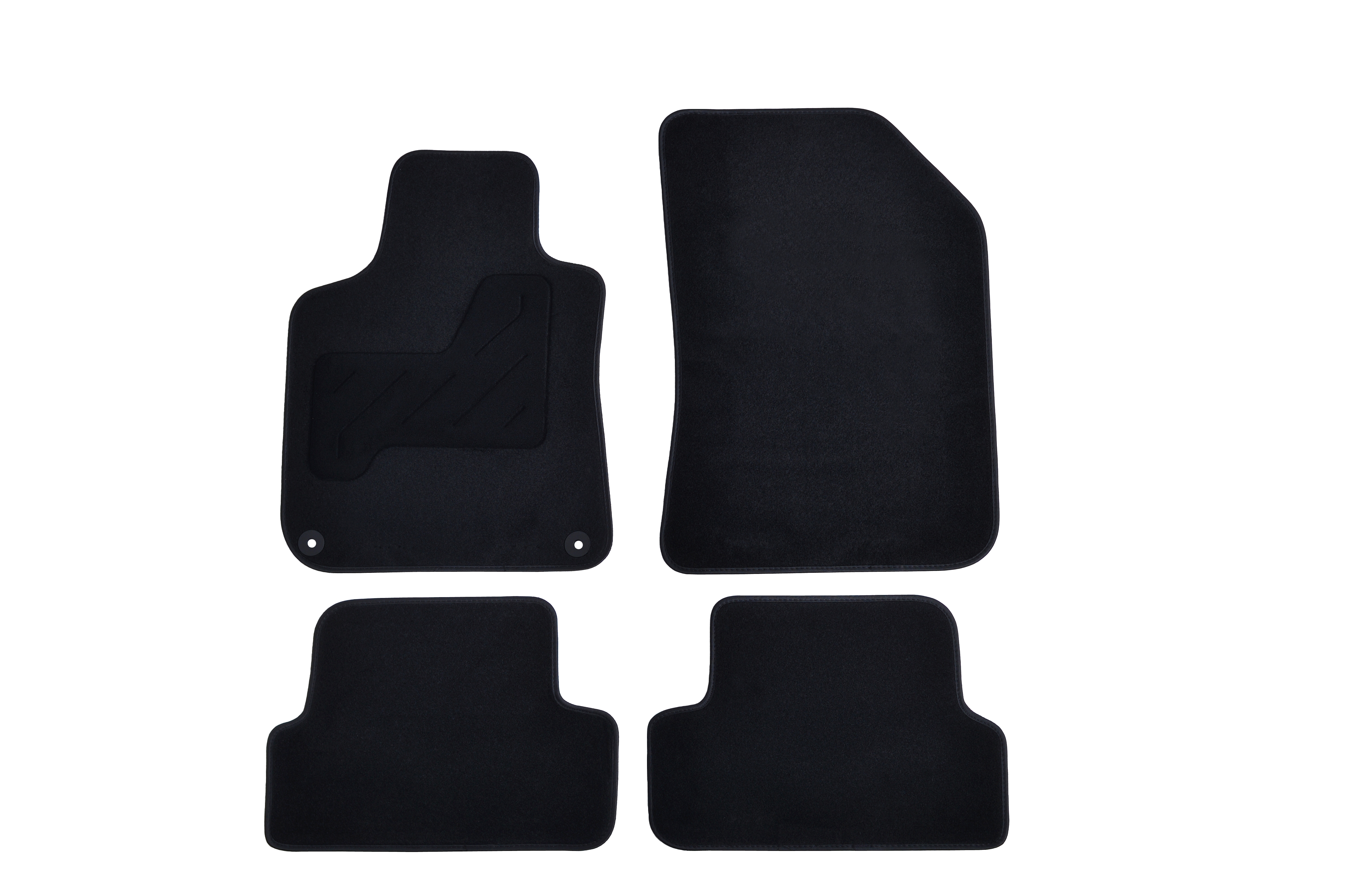 Moquette aiguilletée 750 g/m² - talonnette renforcée et ganse textile - mousse antidérapante côté conducteur - dos granulé côté passager et à l'arrière - clips de fixation d'origine
