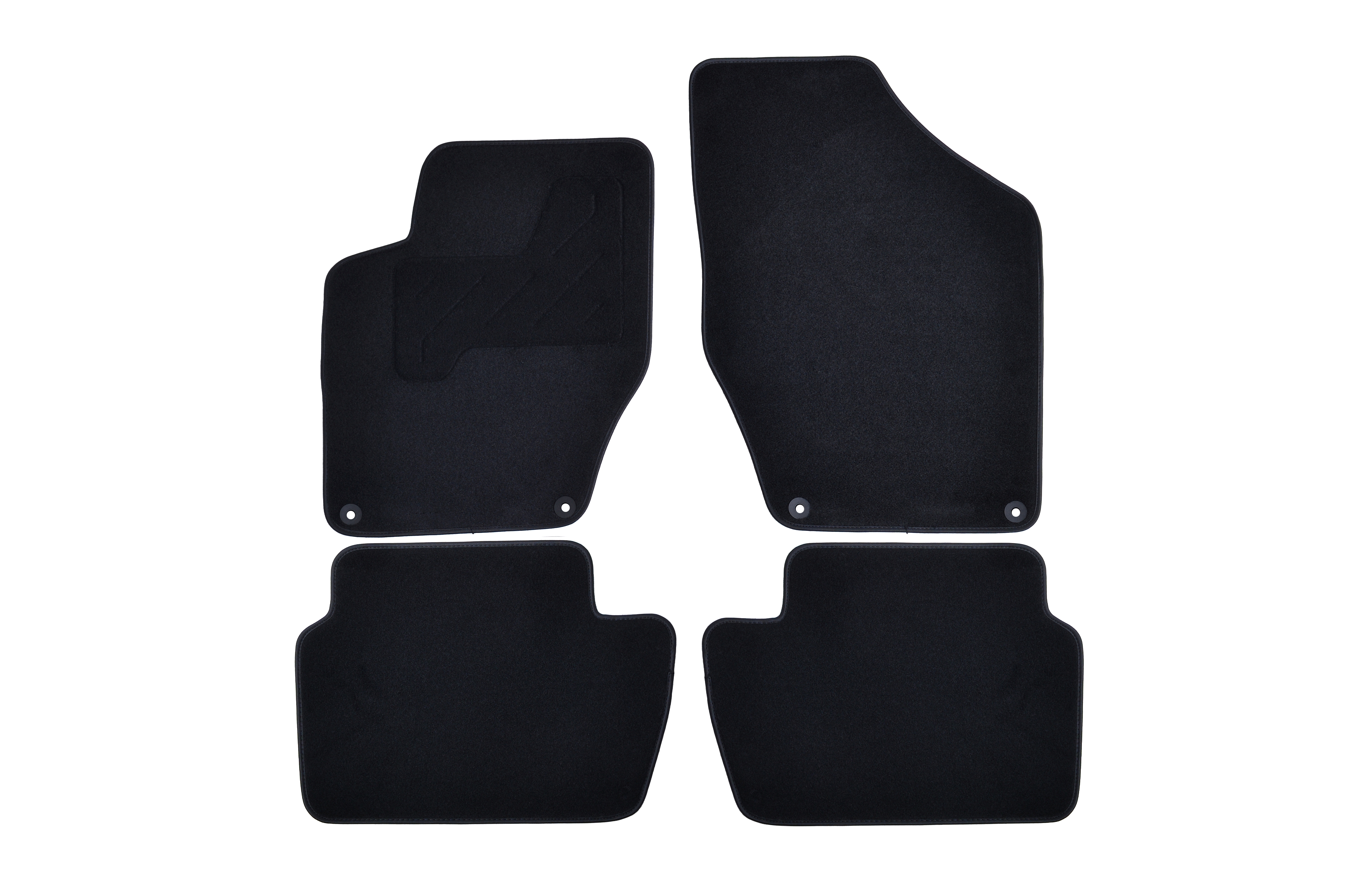 Moquette aiguilletée 750 g/m² - talonnette renforcée et ganse textile - mousse antidérapante côté conducteur - dos granulé côté passager et à l'arrière - clips de fixation d'origine