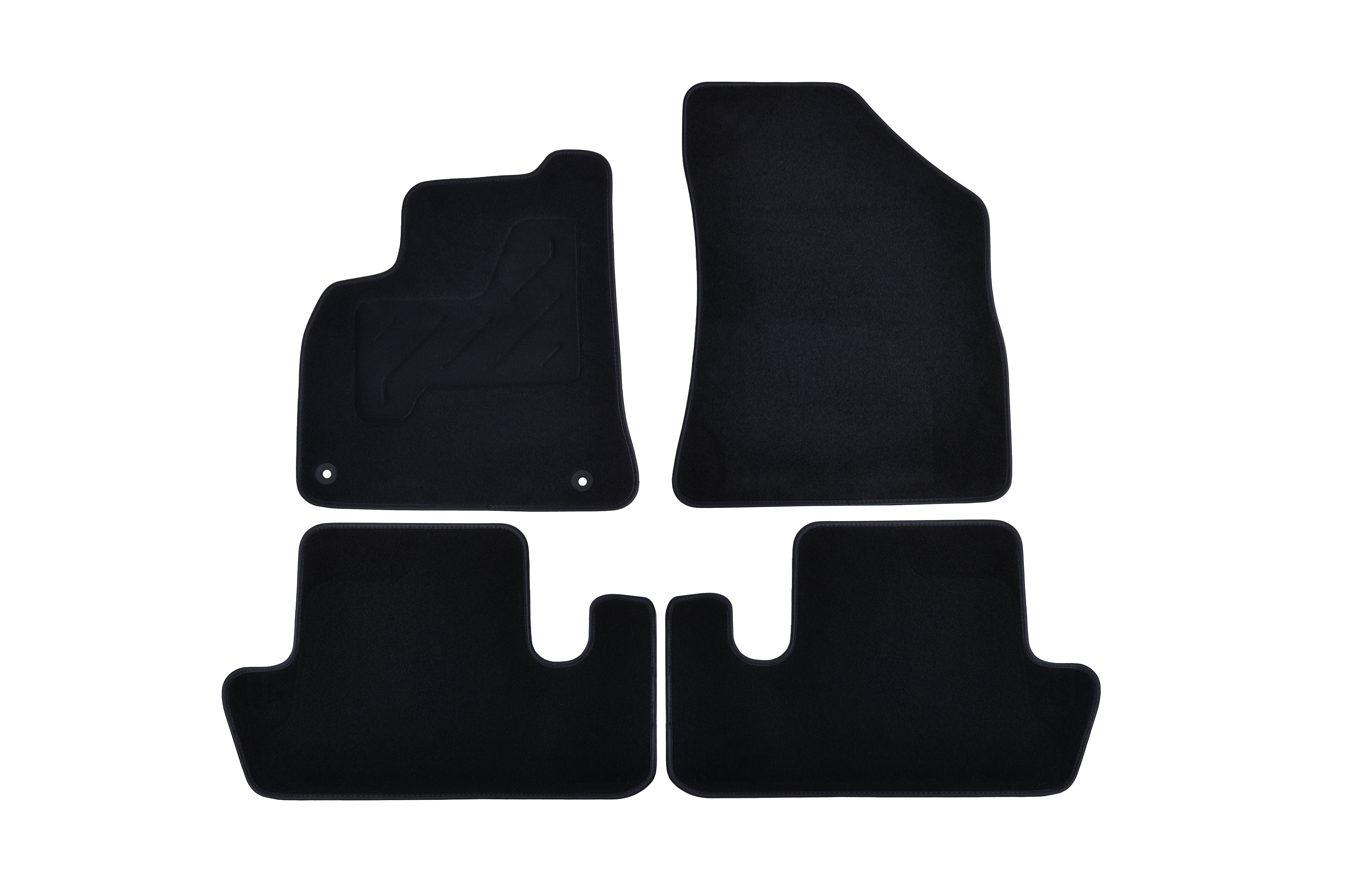 Moquette aiguilletée 750 g/m² - talonnette renforcée et ganse textile - mousse antidérapante côté conducteur - dos granulé côté passager et à l'arrière - clips de fixation d'origine