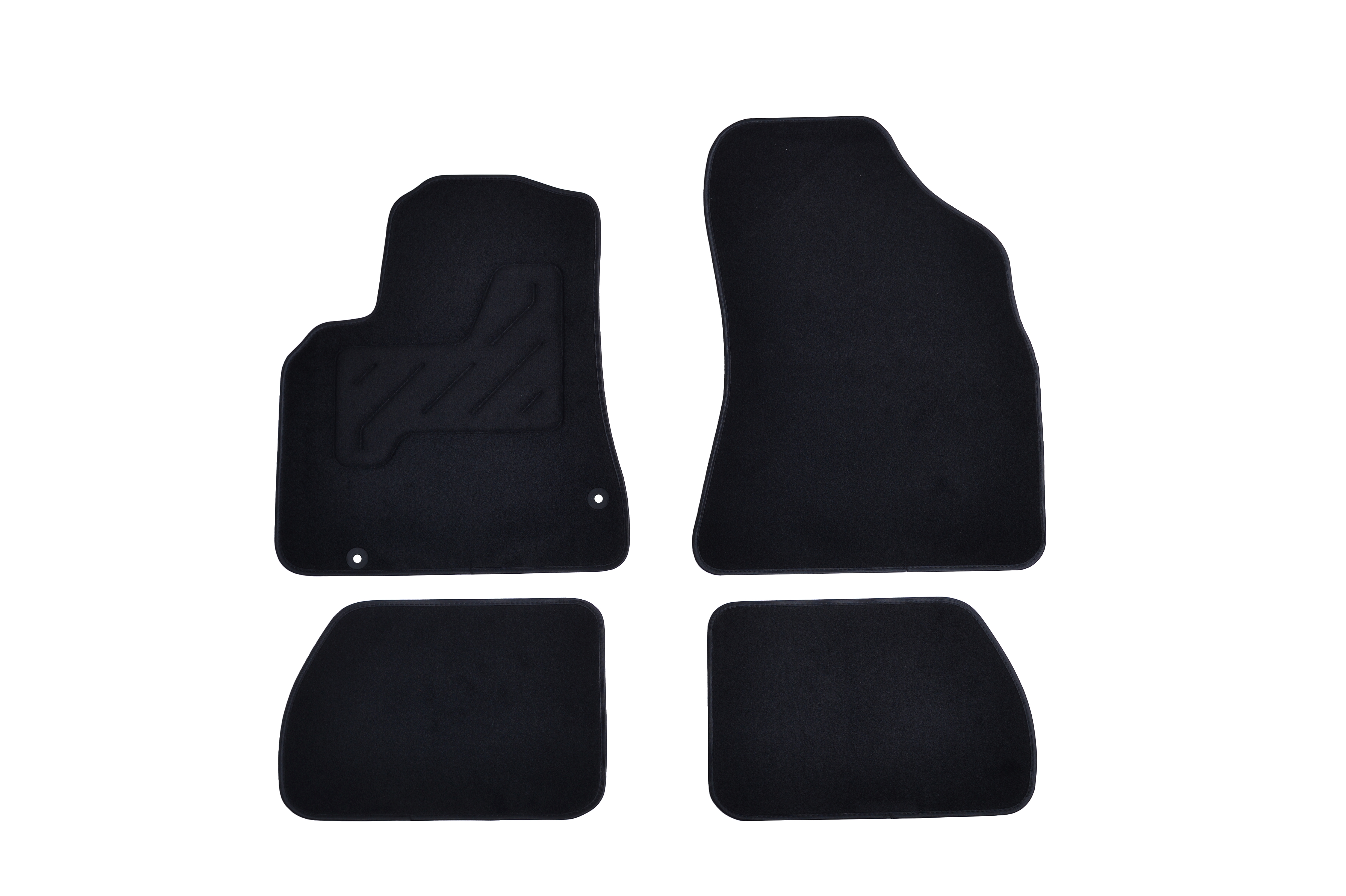 Moquette aiguilletée 750 g/m² - talonnette renforcée et ganse textile - mousse antidérapante côté conducteur - dos granulé côté passager et à l'arrière - clips de fixation d'origine