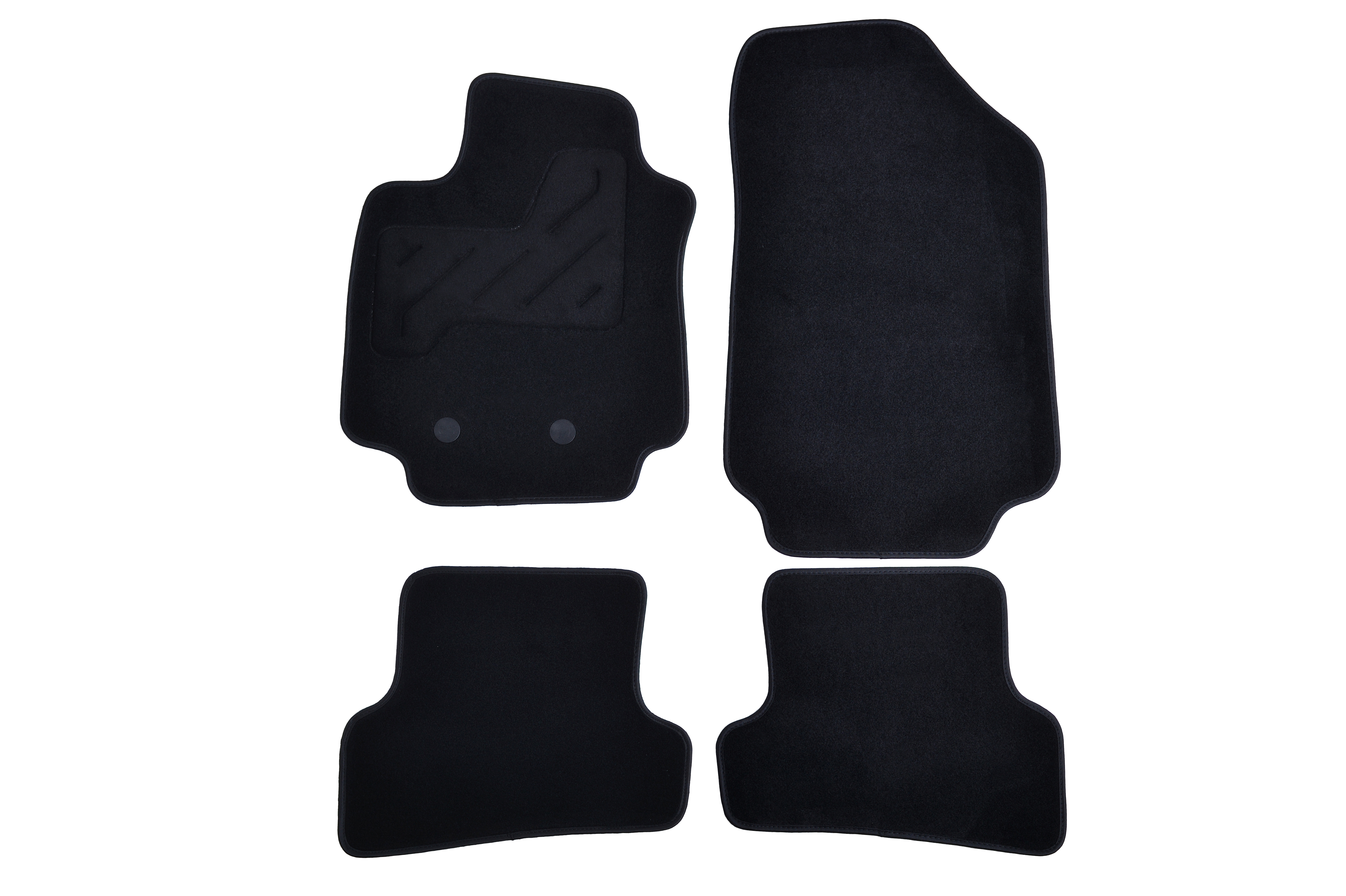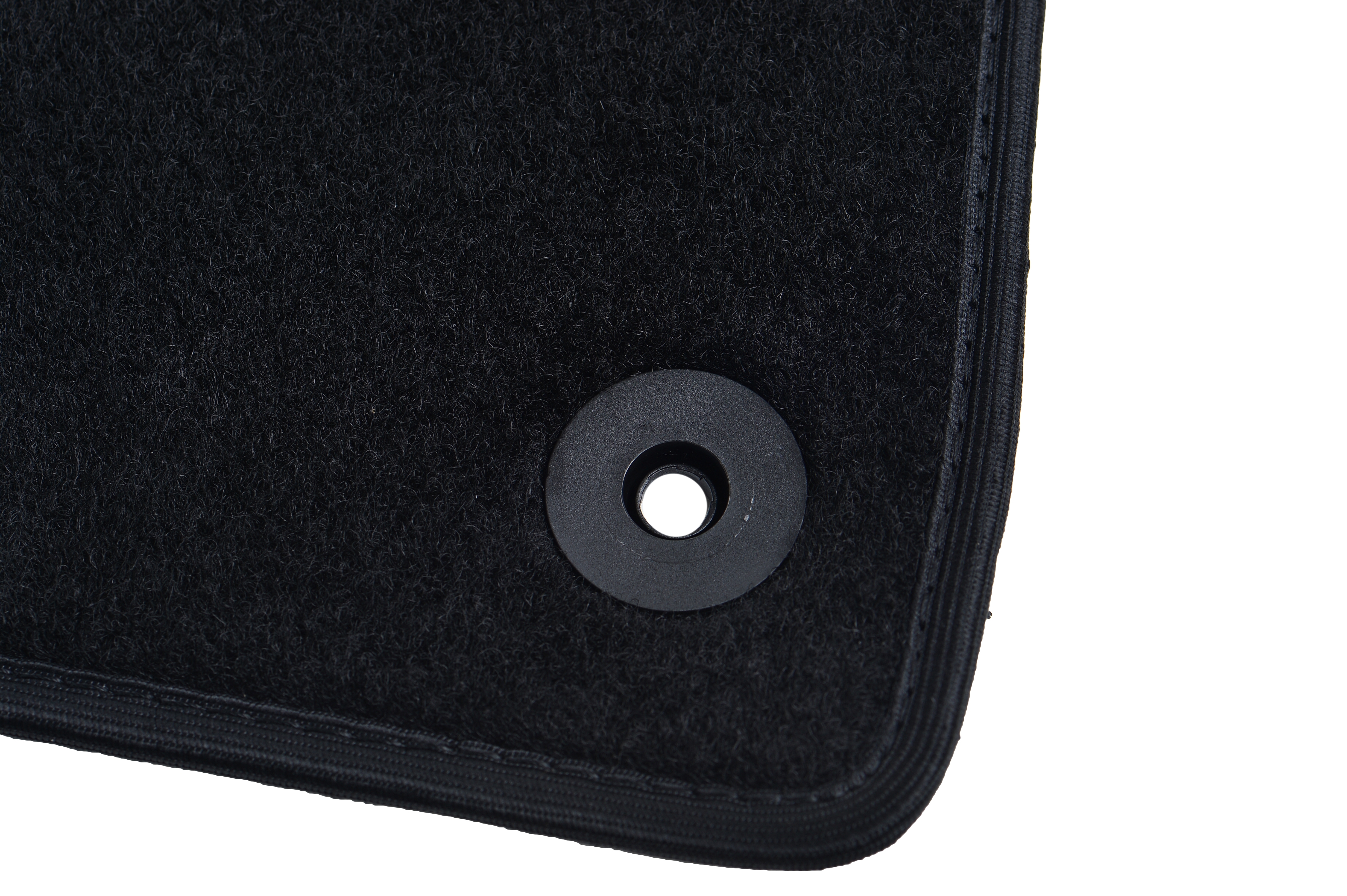 Moquette aiguilletée 750 g/m² - talonnette renforcée et ganse textile - mousse antidérapante côté conducteur - dos granulé côté passager et à l'arrière - clips de fixation d'origine