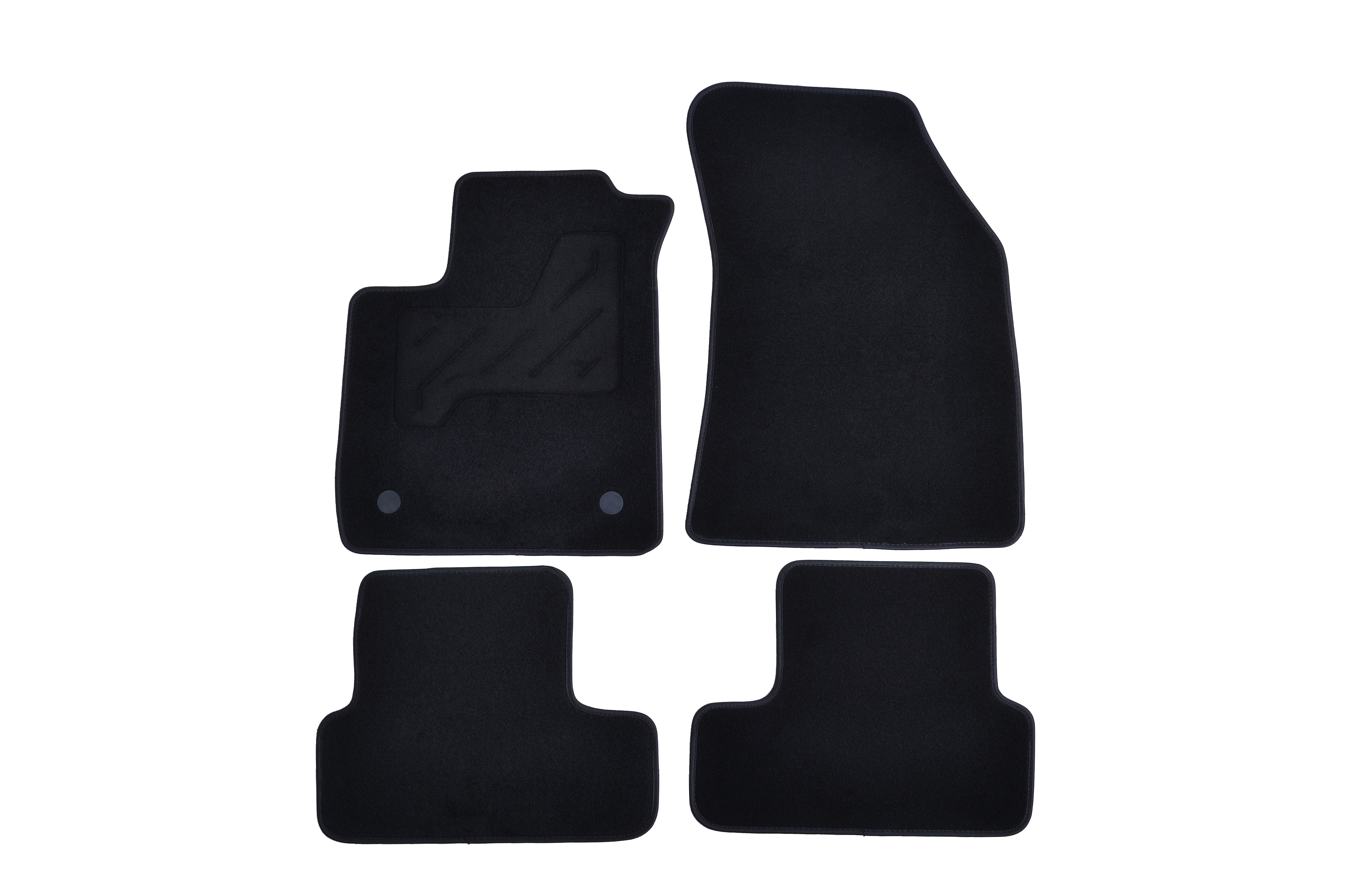Moquette aiguilletée 750 g/m² - talonnette renforcée et ganse textile - mousse antidérapante côté conducteur - dos granulé côté passager et à l'arrière - clips de fixation d'origine
