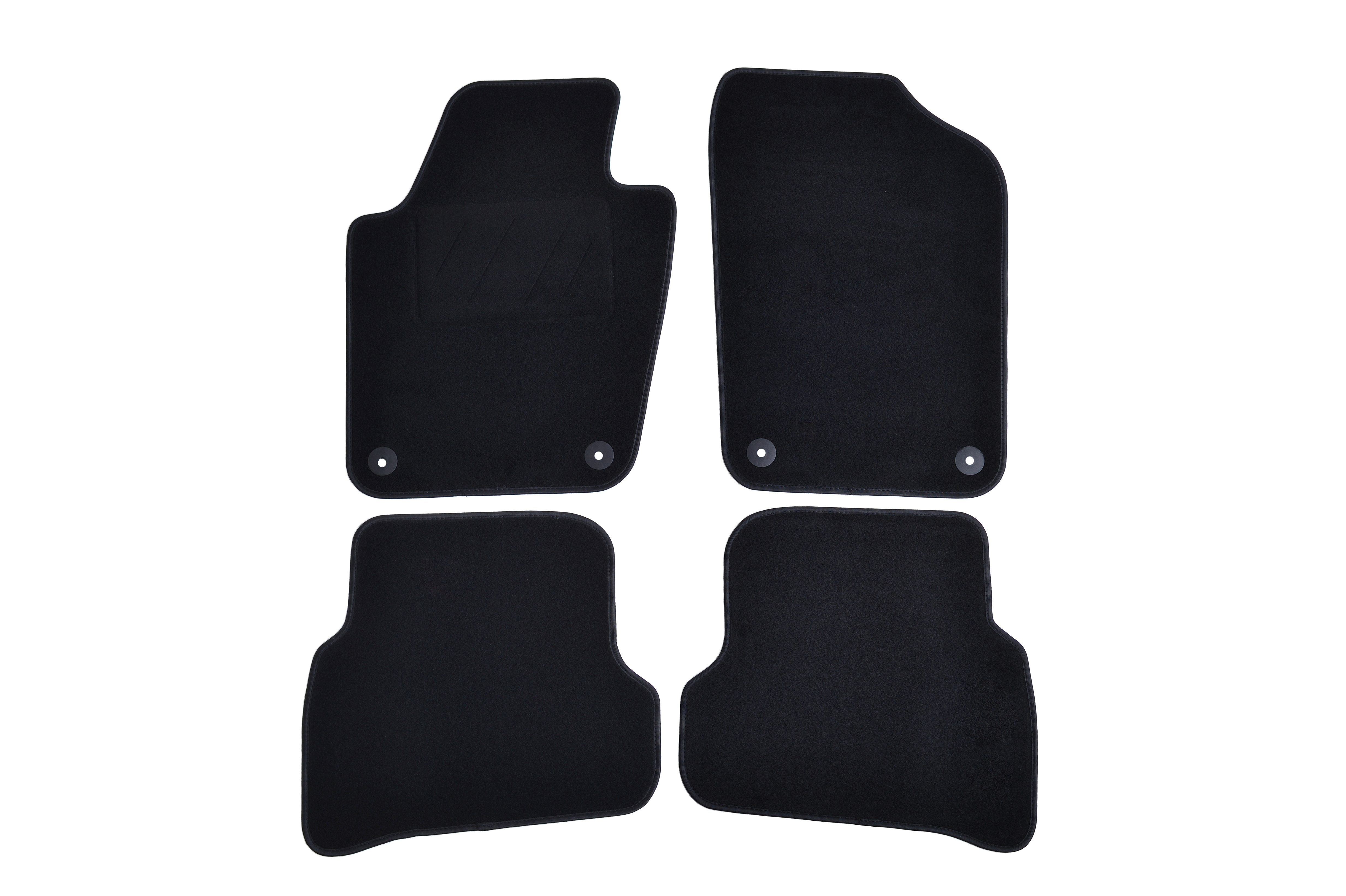Moquette aiguilletée 750 g/m² - talonnette renforcée et ganse textile - mousse antidérapante côté conducteur - dos granulé côté passager et à l'arrière - clips de fixation d'origine