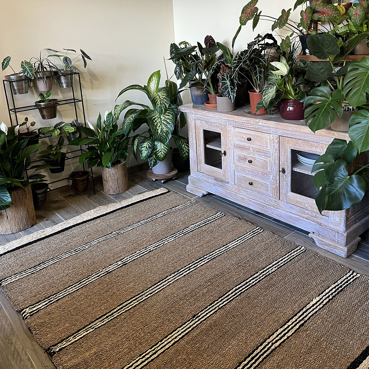 | Libellé | Tapis tressé en feuilles de palme naturel et noir 214 x 151 cm |
