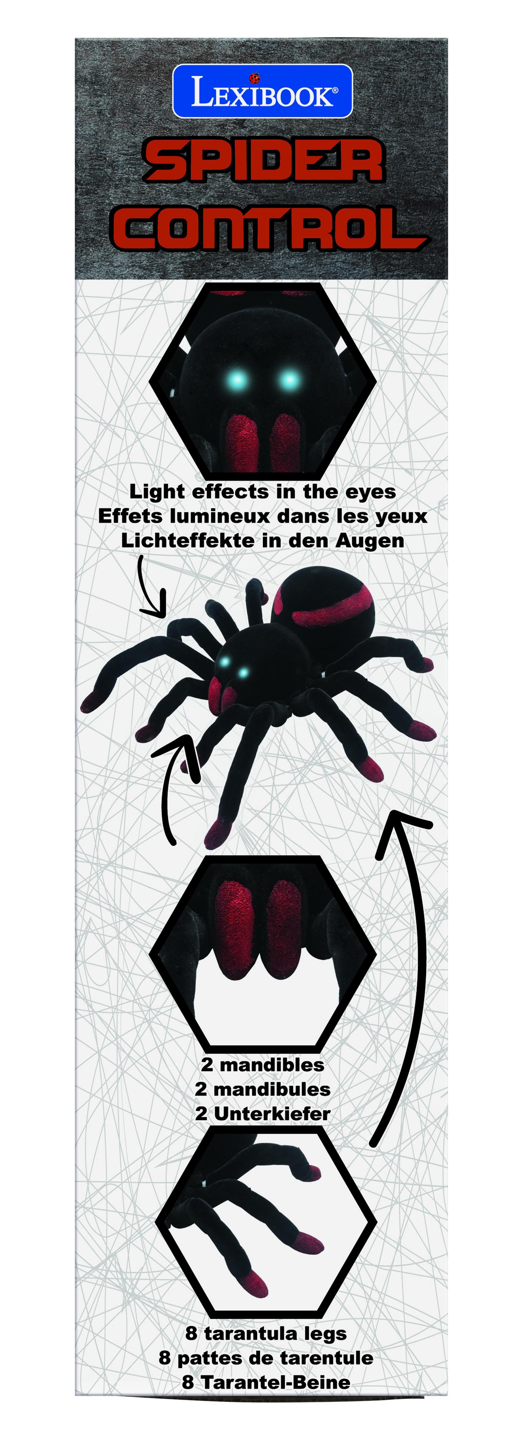 Équipée d'une télécommande pour des interactions réalistes. - Contrôlez l'araignée dans 4 directions : avant, arrière, gauche et droite. - Batterie rechargeable ! - Mode démonstration - Effets lumineux dans les yeux !
