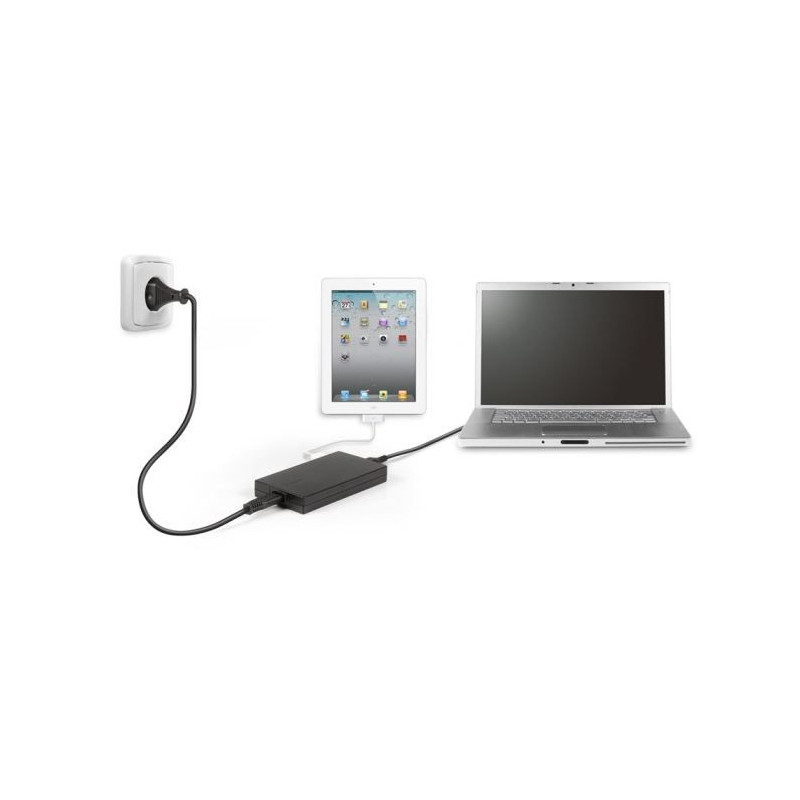 Chargeur compact pour ordinateur portable - Charge simultanément tablette multimédia alimentée par USB - Compatible avec les principales marques d'ordinateurs portables
