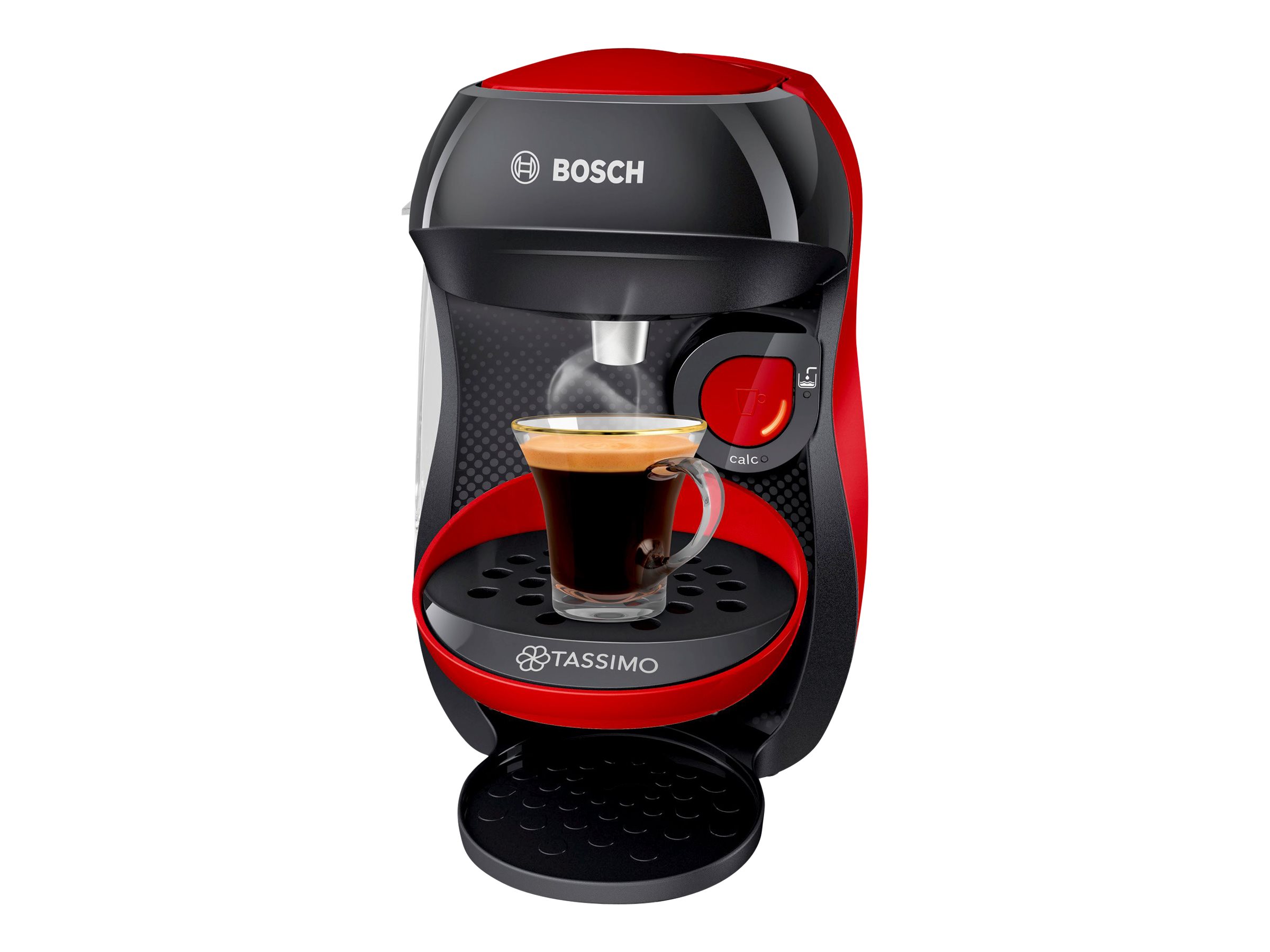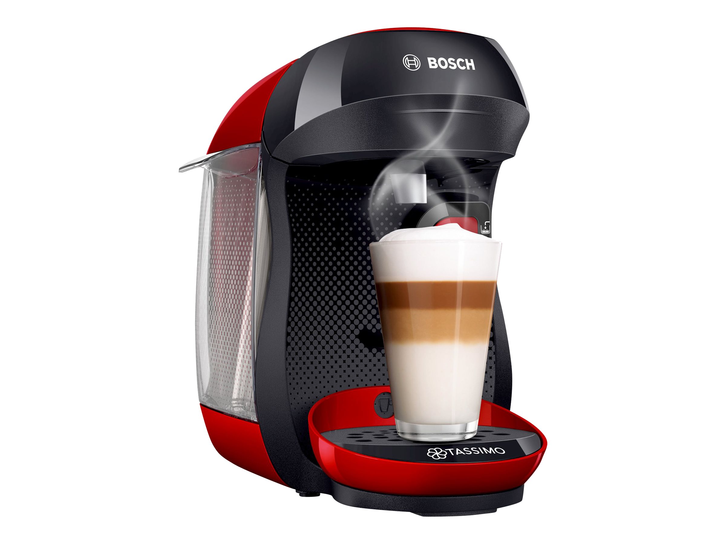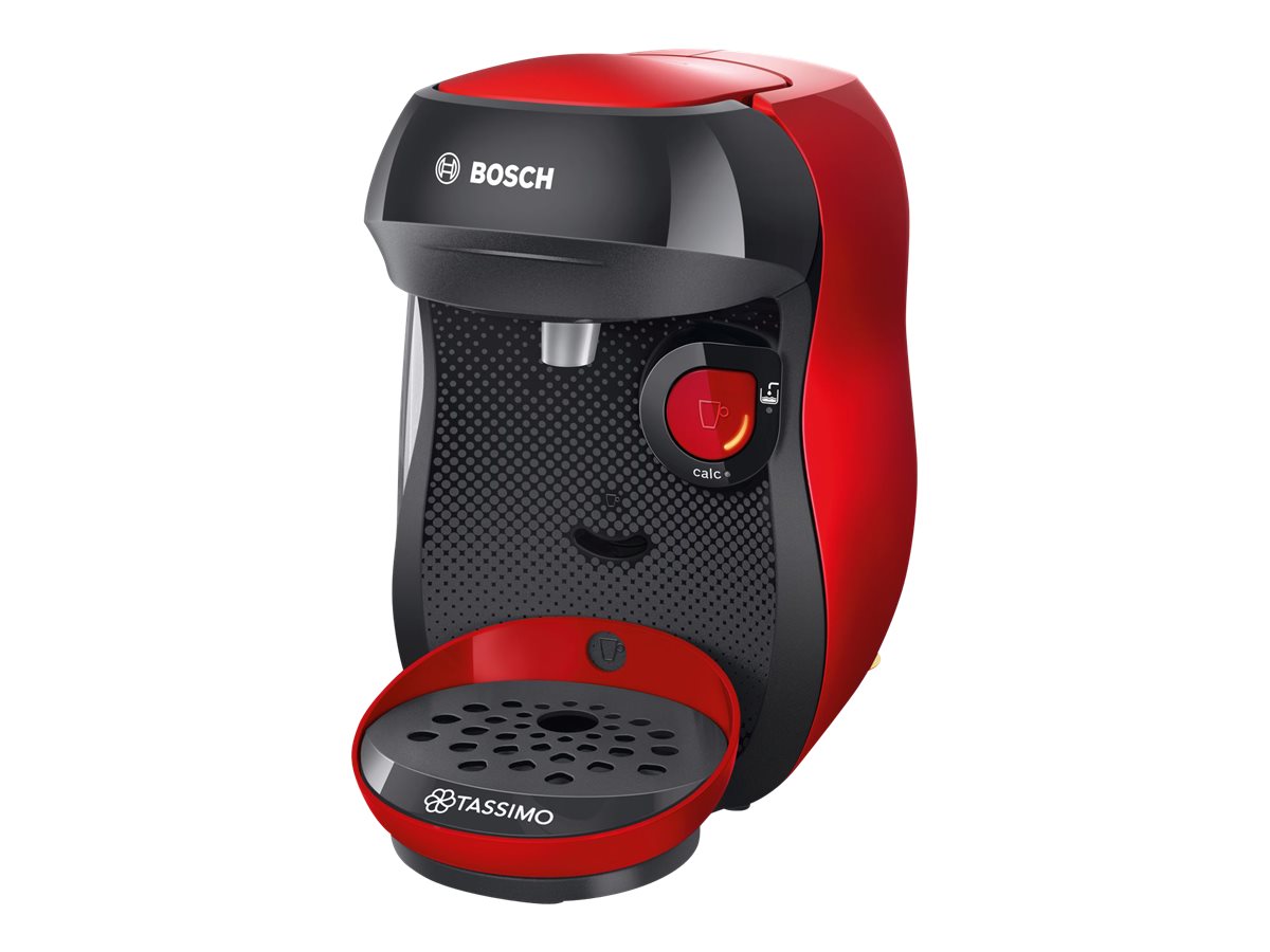 Haute comme 3 pommes avec un design épuré, la machine à café TASSIMO HAPPY trouve facilement sa place dans toutes les cuisines, même les plus minis ! TASSIMO HAPPY est une petite cafetière à capsules, conçu par Bosch. Cette TASSIMO machine à café offre plus que juste du café. Utilisez votre TASSIMO capsules préférées pour préparer toutes les boissons chaudes que vous aimez. Tous les TASSIMO T DISCs sont compatible avec TASSIMO HAPPY. Réservoir pratique de 0.7L Un choix unique de préparation de plus de 40 boissons Une préparation immédiate, sans temps d'attente Très facile d’utilisation: interface tactile Puissance : 1300 Watts Réservoir d'eau : 0,7L