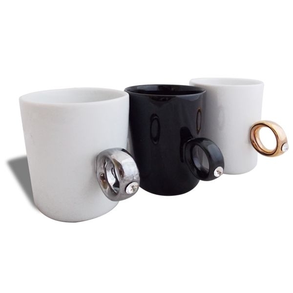 | Libellé | Tasse avec anse en forme de bague mug noir anneau doré |