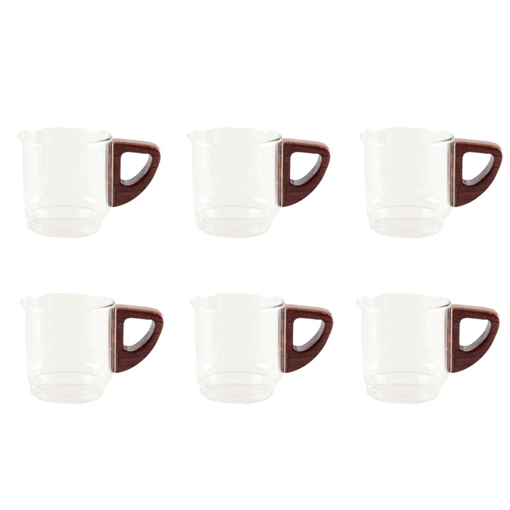 178501 - Lot de 6 tasses à café en verre avec une anse en bois 5.5x5.5x8.3cm - AULICA