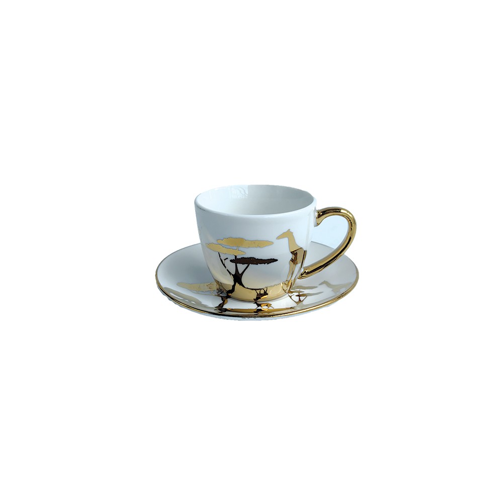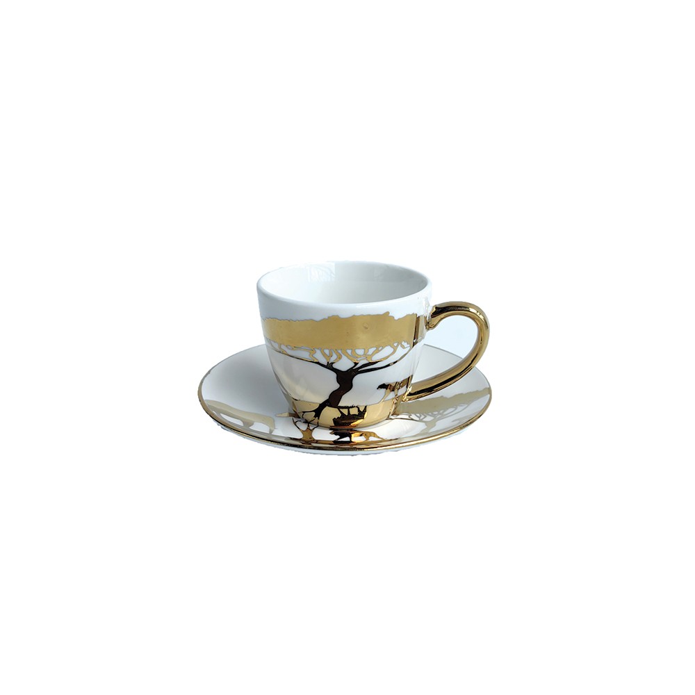 Tasses et sous-tasses à café dorées Savane - lot de 4