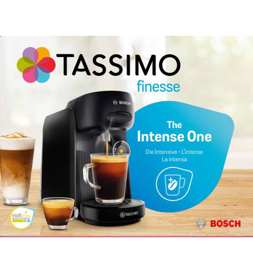 BOSCH - TASSIMO - T16 Finesse - Machine à café multi-boissons - coloris noir - 40 boissons - 1 clic et c'est prêt - 0,7l - Fonction "IntensityBoost" - programme de nettoyage et detartrage auto - nettoyage vapeur systématique entre les boissons