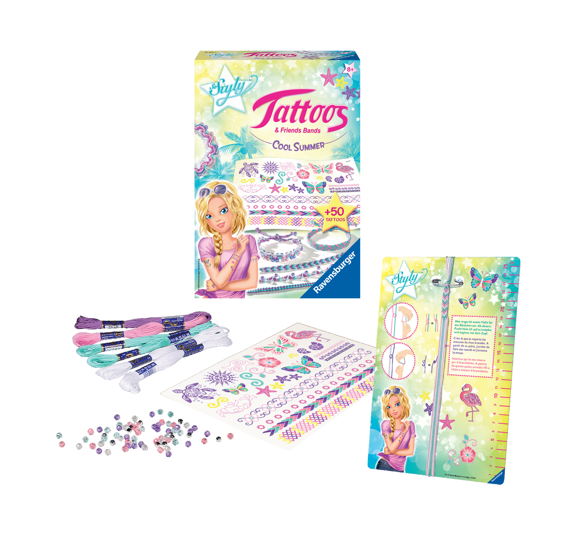Personnalise ton style avec les 50 motifs de tatouage différents à combiner avec des bracelets brésiliens. Grâce au support, c'est facile de fixer son bracelet. Imprimées sur le support, tu trouveras toutes les explications nécessaires pour faire les nœuds, définir la taille finale de ton bracelet et réaliser de nouveaux modèles. 4 couleurs de fil et 200 perles sont à ta disposition dans ce coffret ! A partir de 8 ans. Ce produit est composé de matériaux issus de forêts bien gérées certifiées FSC®, de matériaux recyclés et de matériaux issus d’autres sources contrôlées (FSC-C111262).
