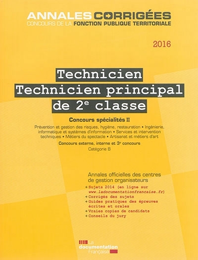 | Libellé | Technicien technicien principal de 2e classe 2016-concours specialites ii (Broché) |