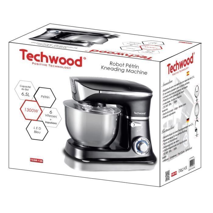 1300W - Capacité : 6.5L - Vitesses : 6 - Fonction pétrin, batteur et fouet - Mouvement planétaire - Protection contre les surcharges du moteur - Bras inclinable avec bouton de verrouillage - Interrupteur de sécurité - Pieds antidérapants - Inclus : Couvercle transparent avec ouverture - Garantie : 2 ans