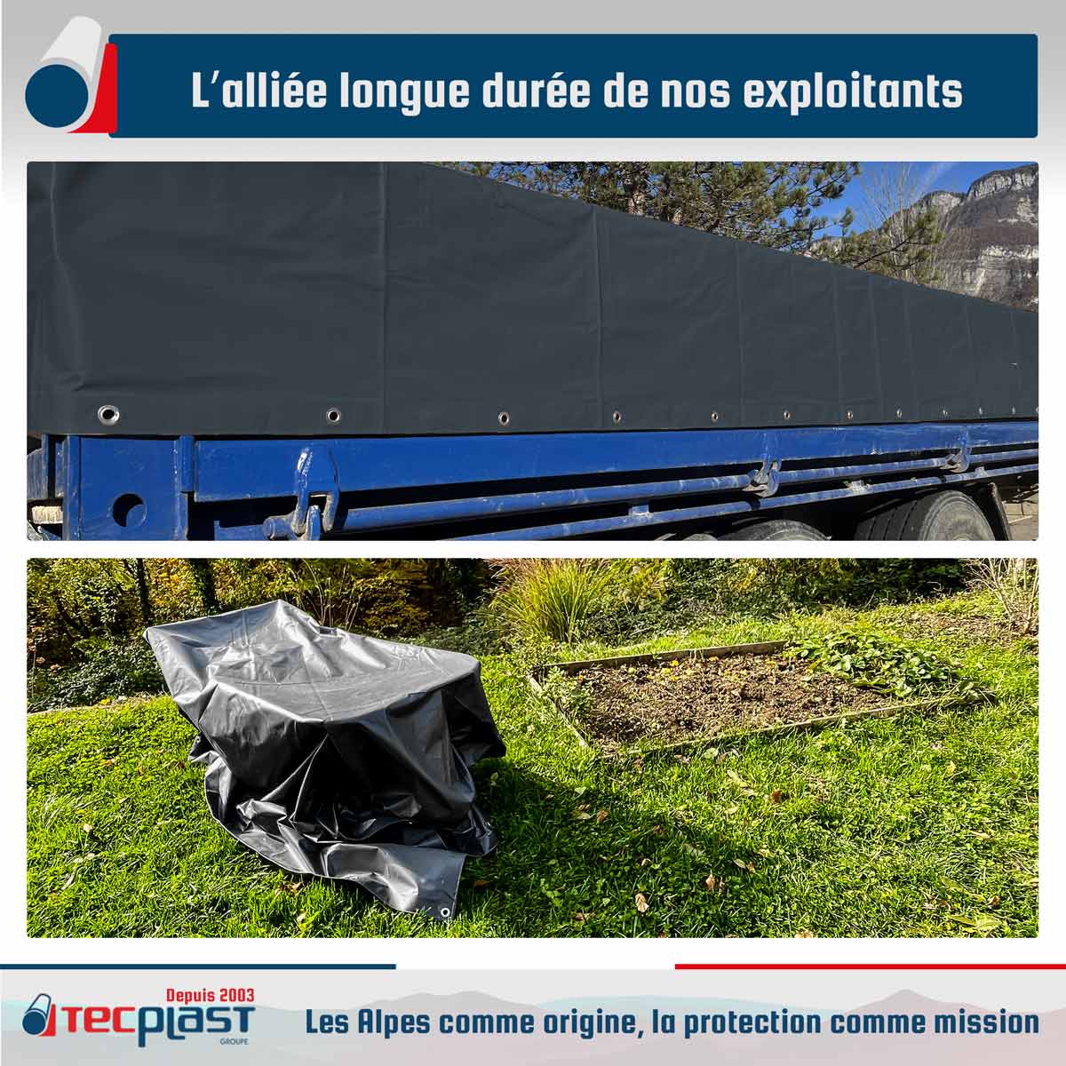TECPLAST Bâche Agricole 2x8 m LP506AG Gris anthracite - Garantie 5 ans - Bâche PVC étanche de protection