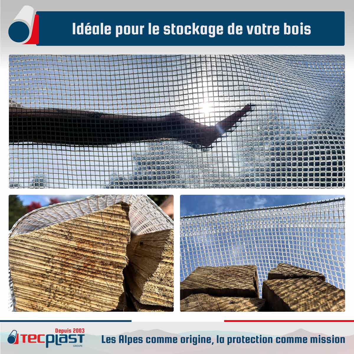 TECPLAST Bâche Bois 4x6 m TR170BO - Bâche Armée Transparente - Haute Qualité - Protection imperméable pou