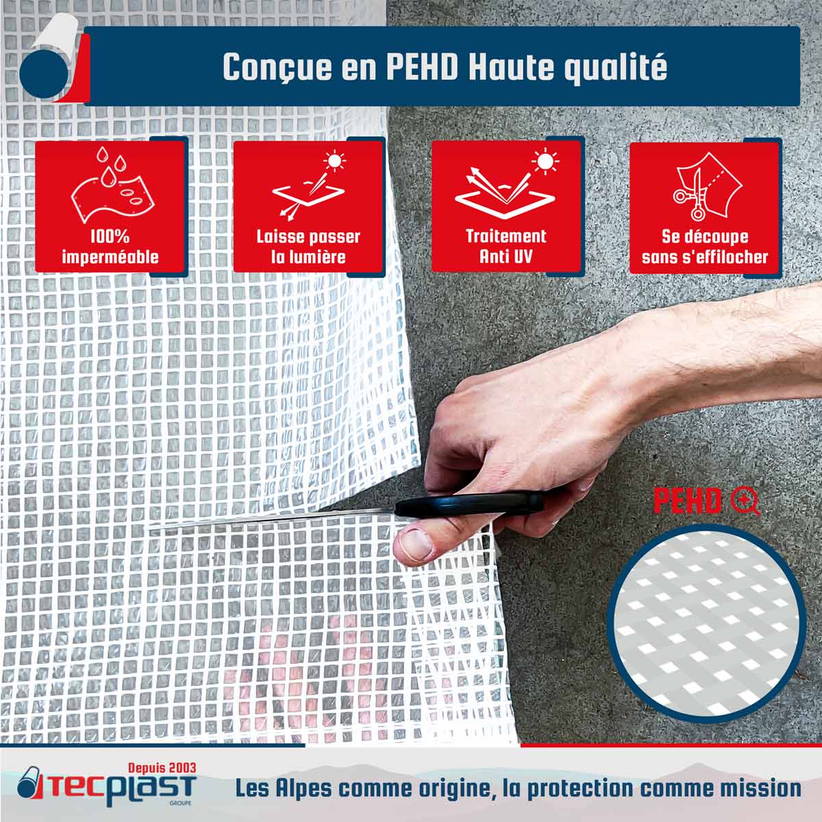 • Très facile à utiliser, la bâche avec armature se découpe sans s'effilocher avec une simple paire de ciseaux.